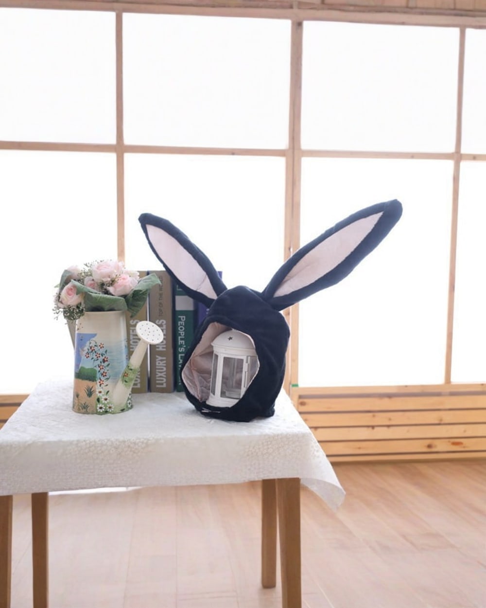 This super kawaii bunny ears-hat will keep you cute and warm in the outdoors or at home!