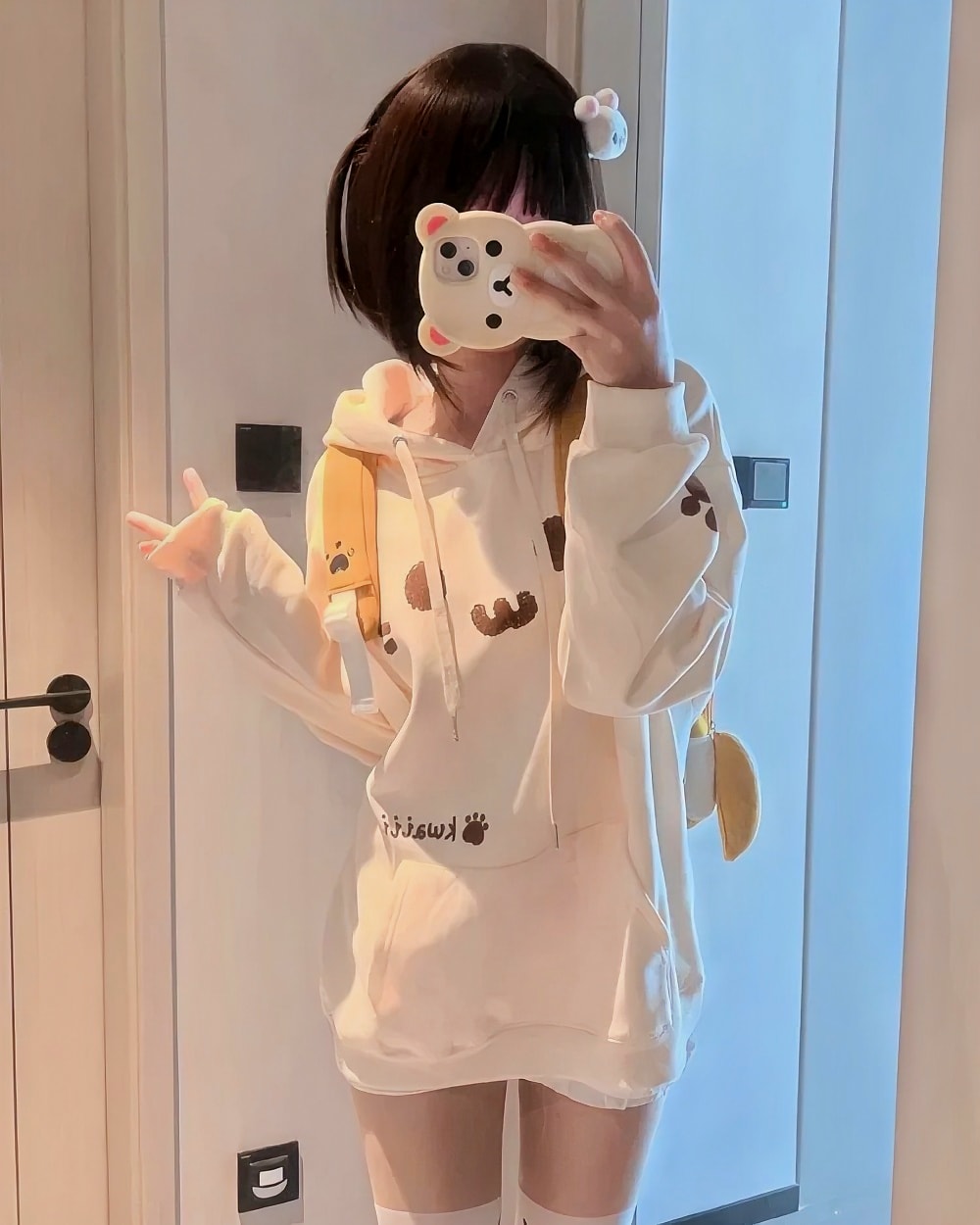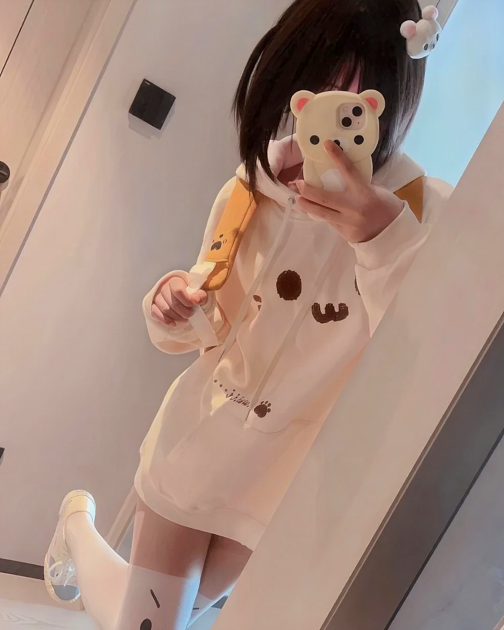 Wrap yourself in cozy cuteness with the Kaomoji Bear Hoodie! (づ。◕‿‿◕。)づ This apricot-colored hoodie features an adorable kaomoji face at the center, giving off playful and warm vibes perfect for any kawaii enthusiast. With its oversized fit and super soft fabric, it’s like getting a big bear hug every time you wear it! 🧸💖