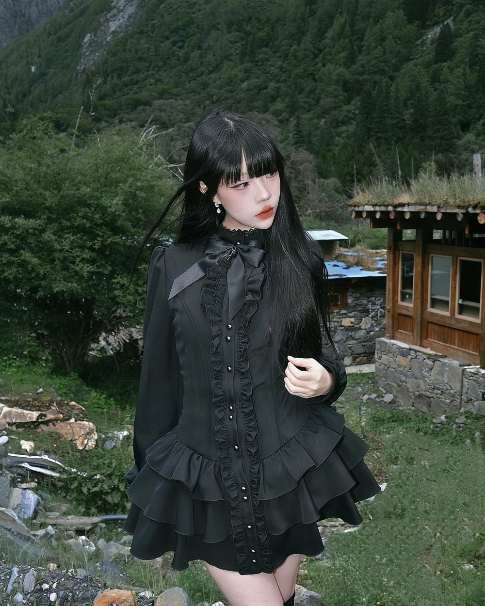 - Romantic puff sleeves with delicate ruffle cuffs for that perfect dark lolita silhouette