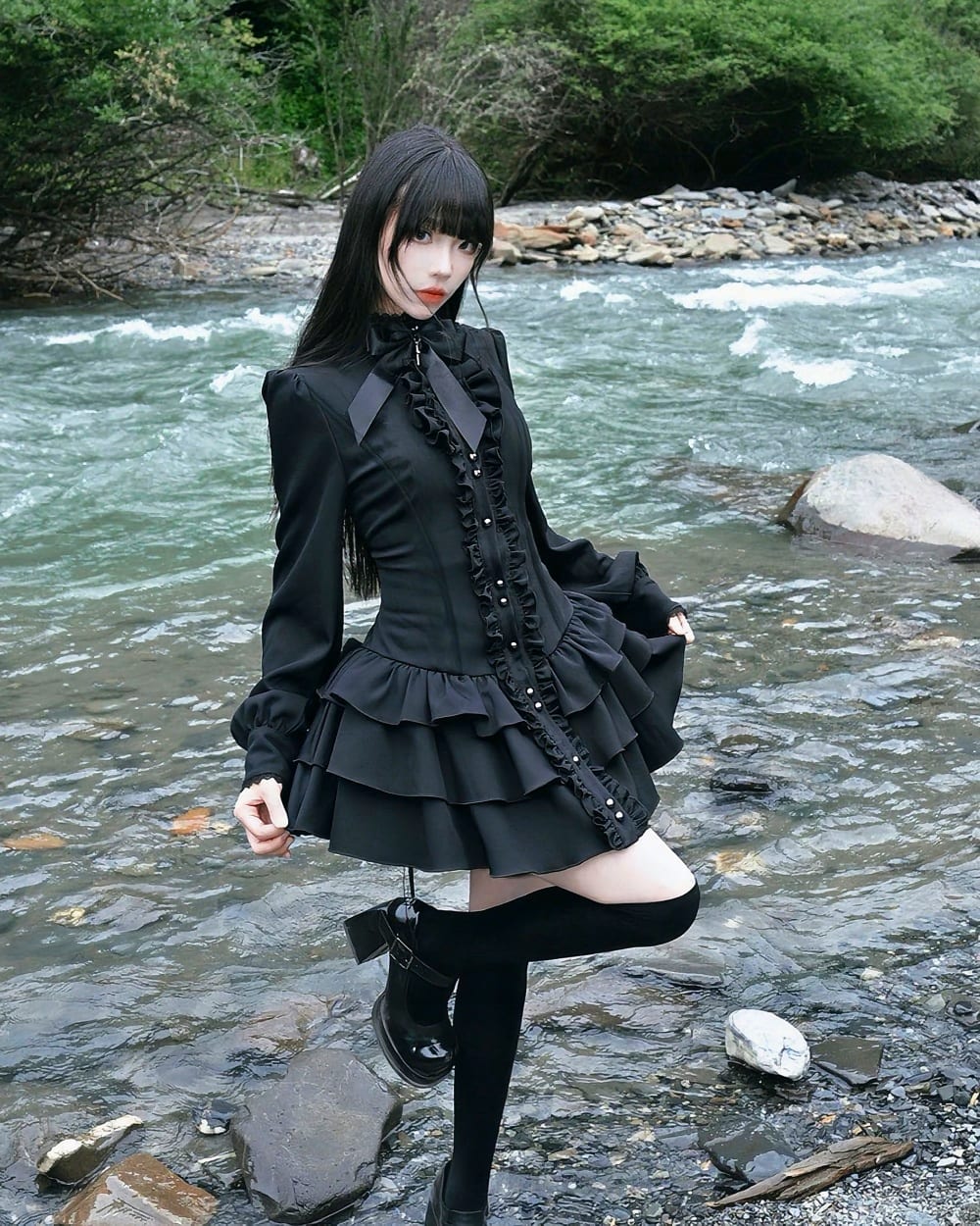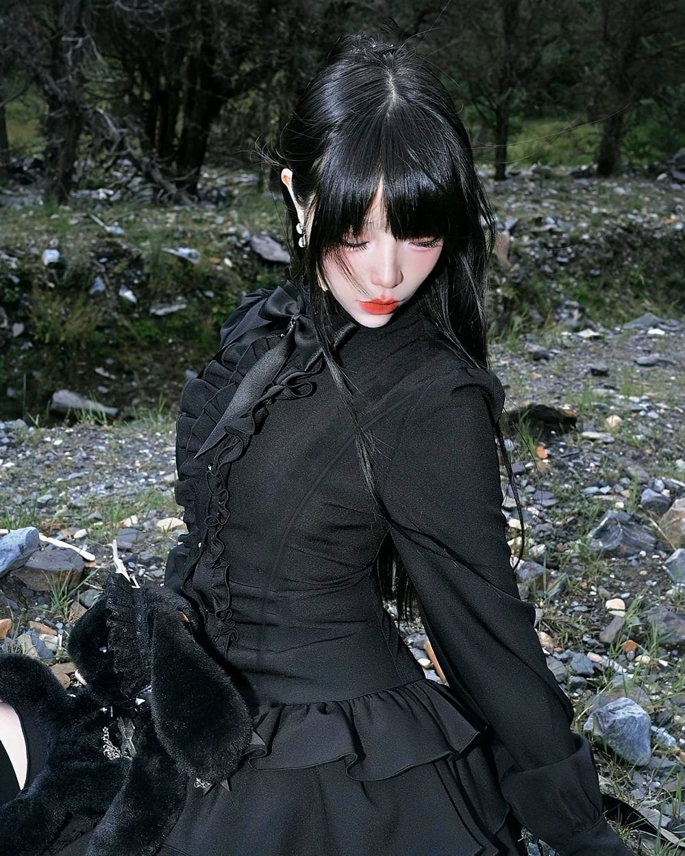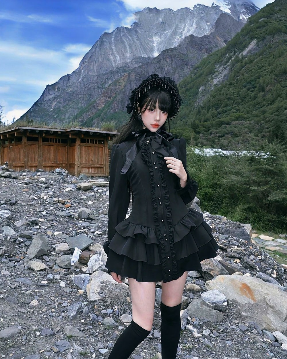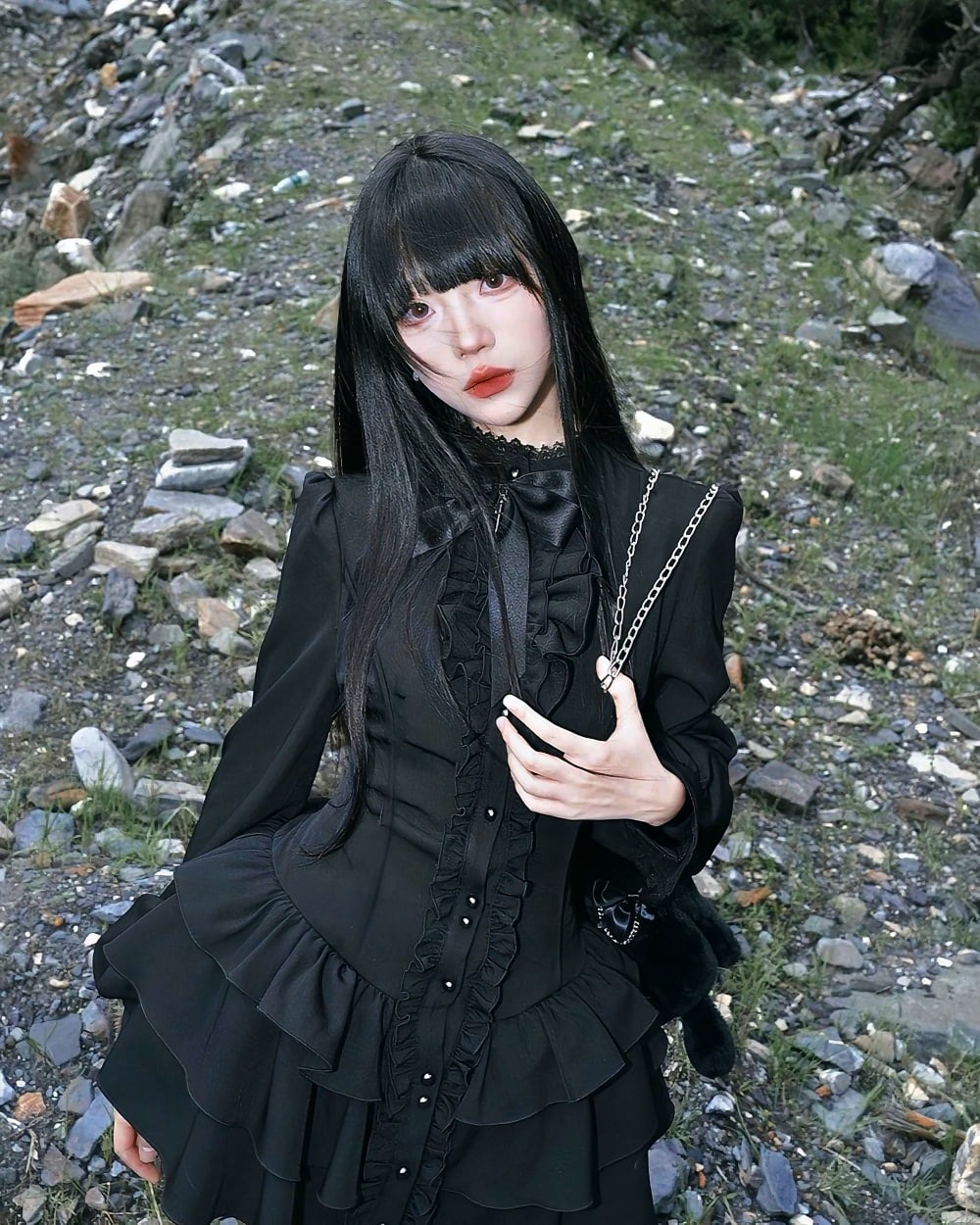 🖤 Pair with platform boots and gothic accessories for classic dark lolita elegance