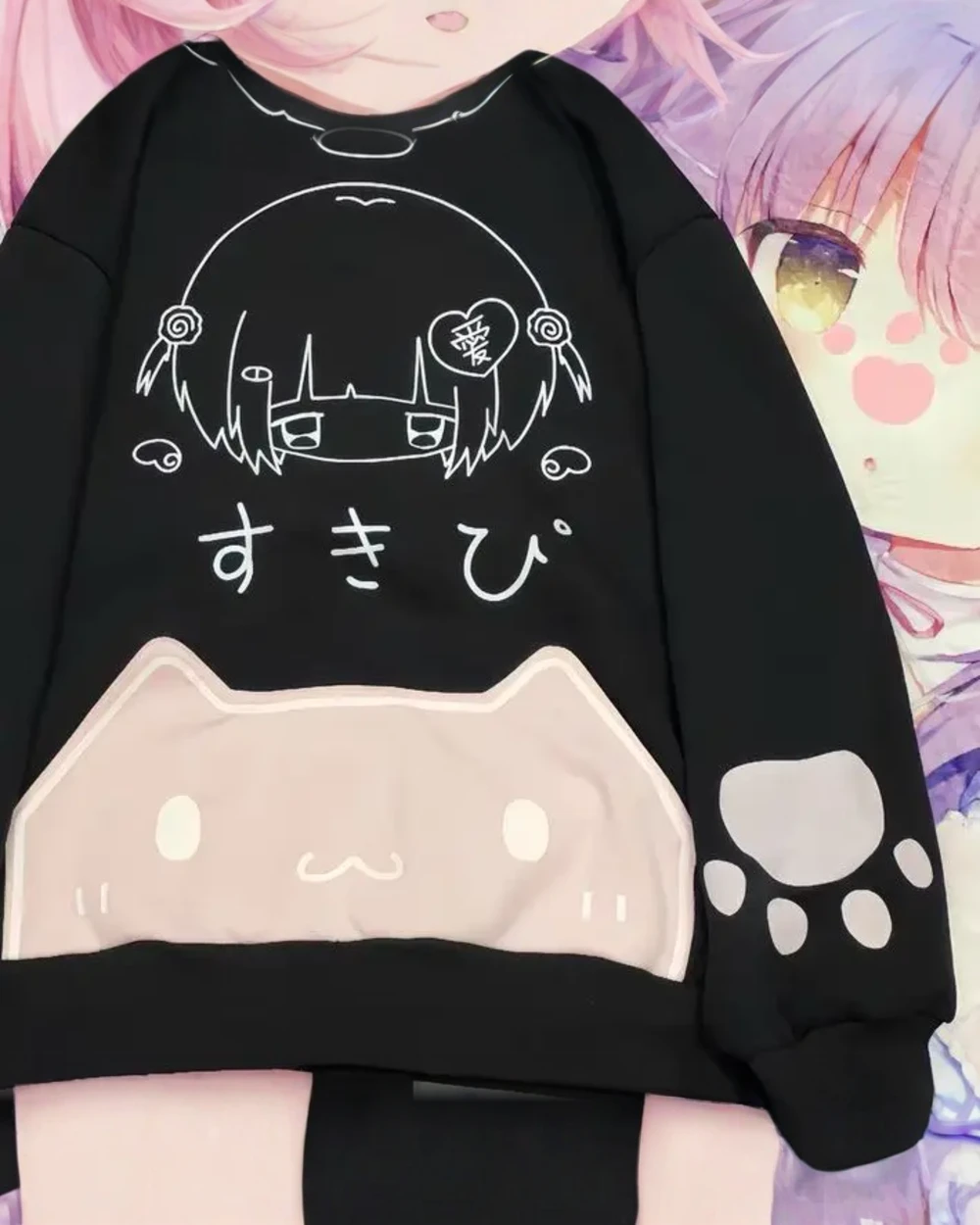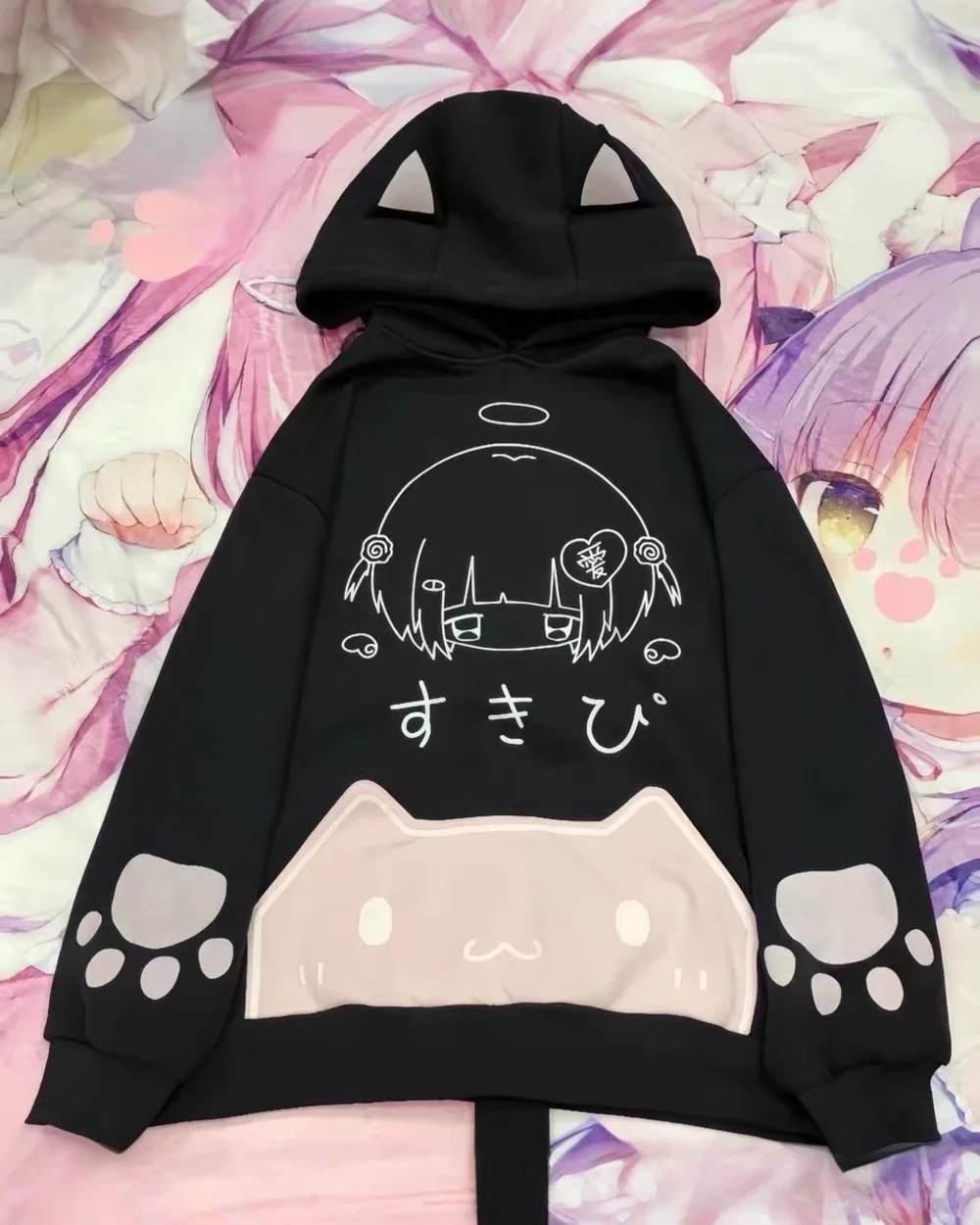 Black Pink Cat Hoodie – Cutecore Aesthetic すきび 🖤🎀🐾