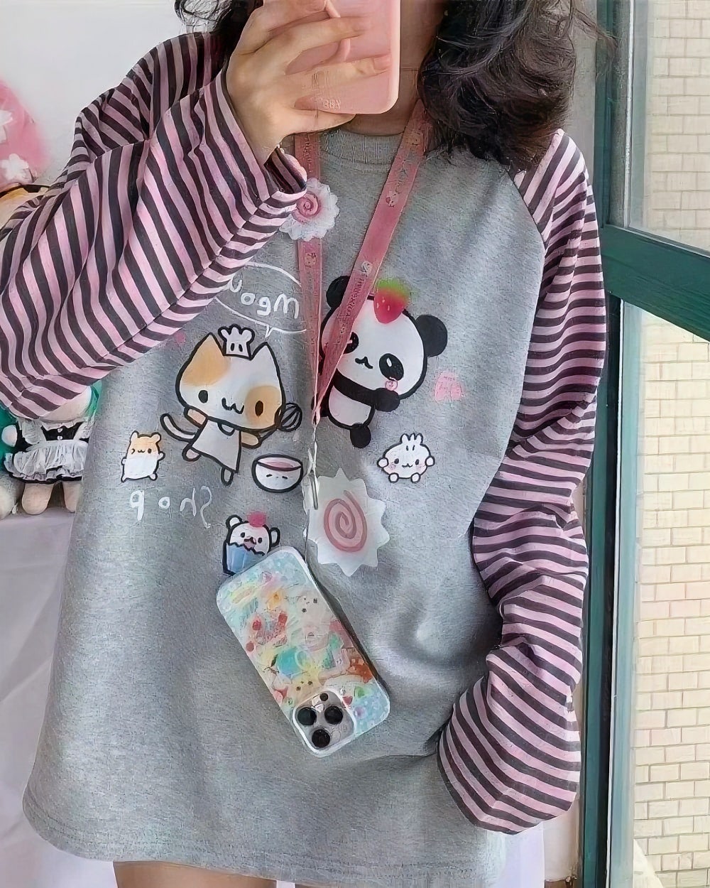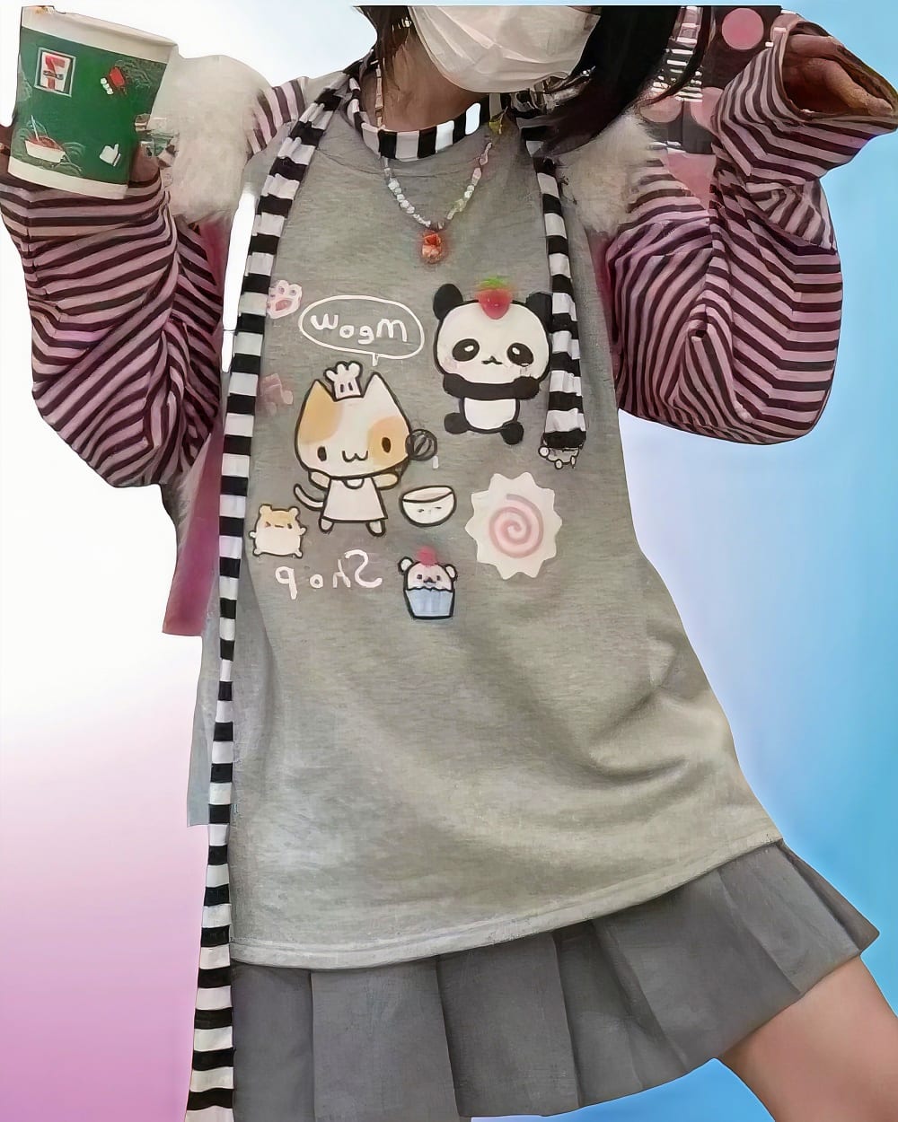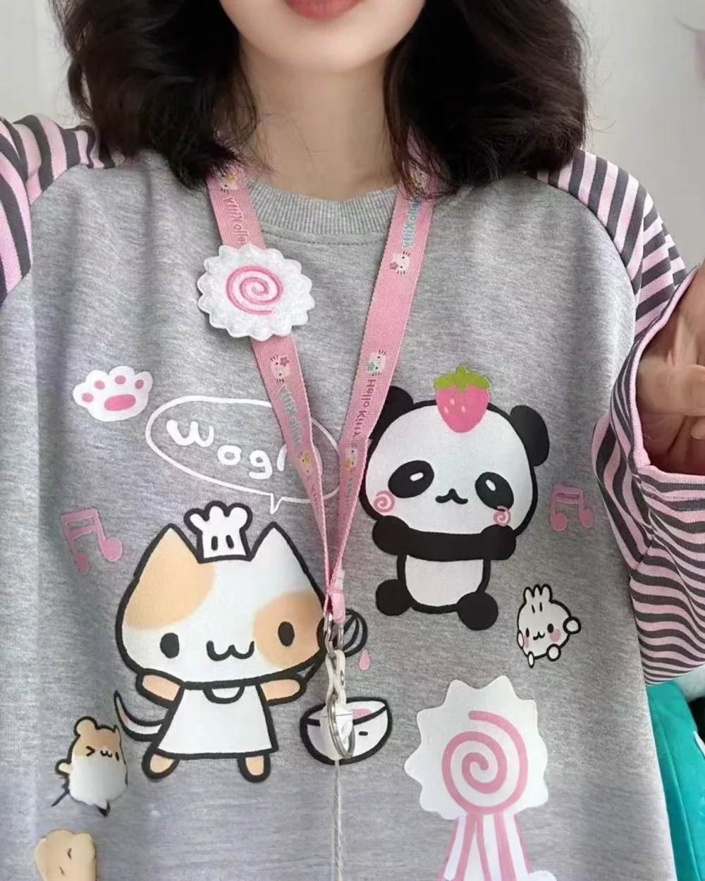Step into your own adorable cat cafe with this dreamy gray sweatshirt! Featuring an enchanting collection of kawaii kitty characters in soft pastels, this cozy piece brings that perfect harajuku charm to your everyday wardrobe. The relaxed fit and premium cotton blend make it ideal for layering or wearing solo during those cafe dates and study sessions. ✨
