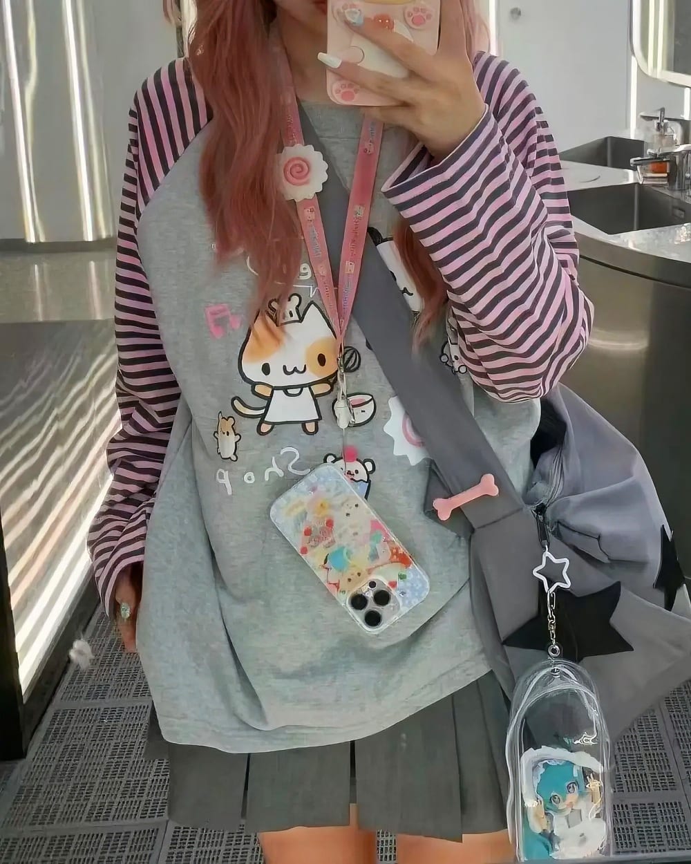 Whether you’re channeling your inner cat lady or embracing that soft harajuku aesthetic, this sweatshirt transforms any outfit into a kawaii masterpiece (ノ◕ヮ◕)ノ*:・゚✧