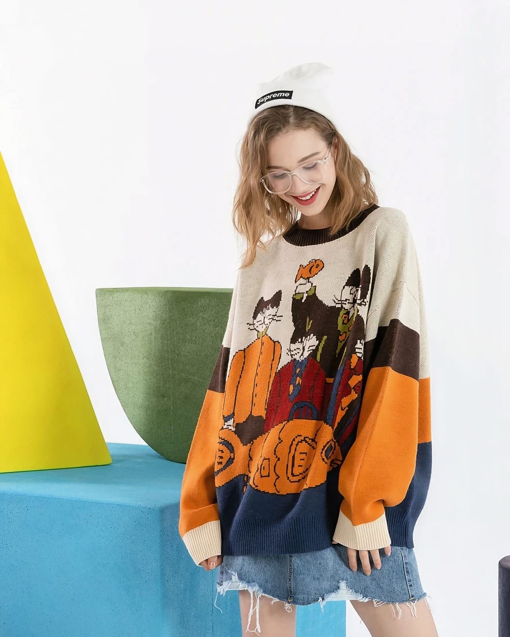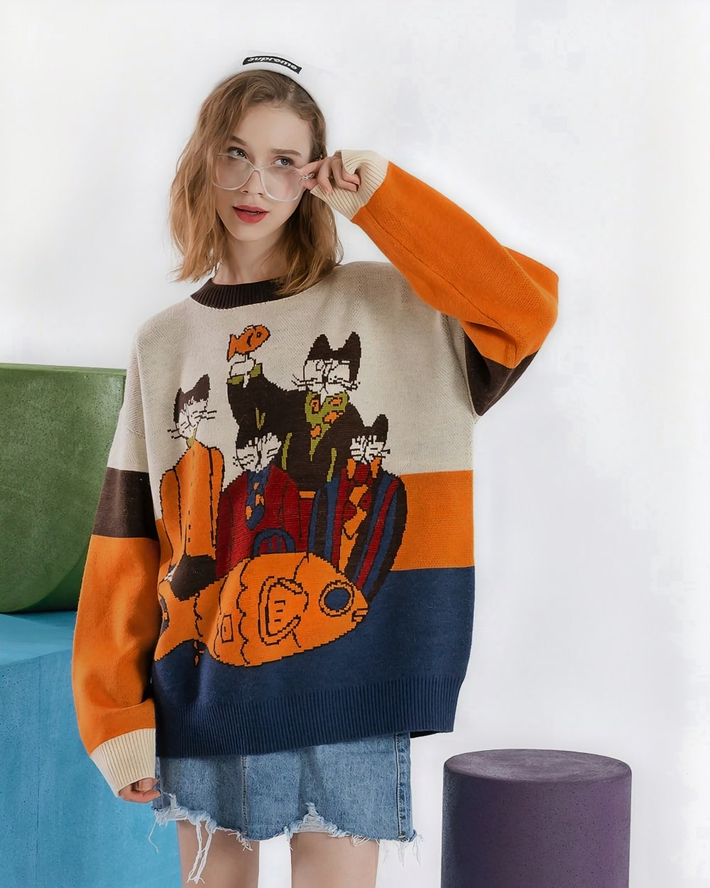 Cat Reunion Sweater – Retro Aesthetic 🐾✨