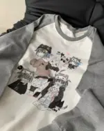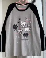 Bring a touch of Harajuku charm to your daily rotation with this adorable long-sleeve tee. Featuring hand-drawn style anime illustrations and cat-themed graphics, this top captures the whimsical essence of cutecore culture in a soft, breathable cotton blend fabric.