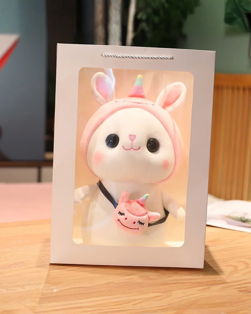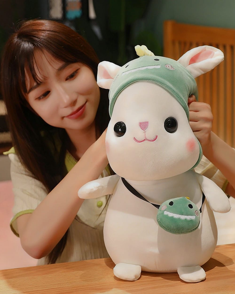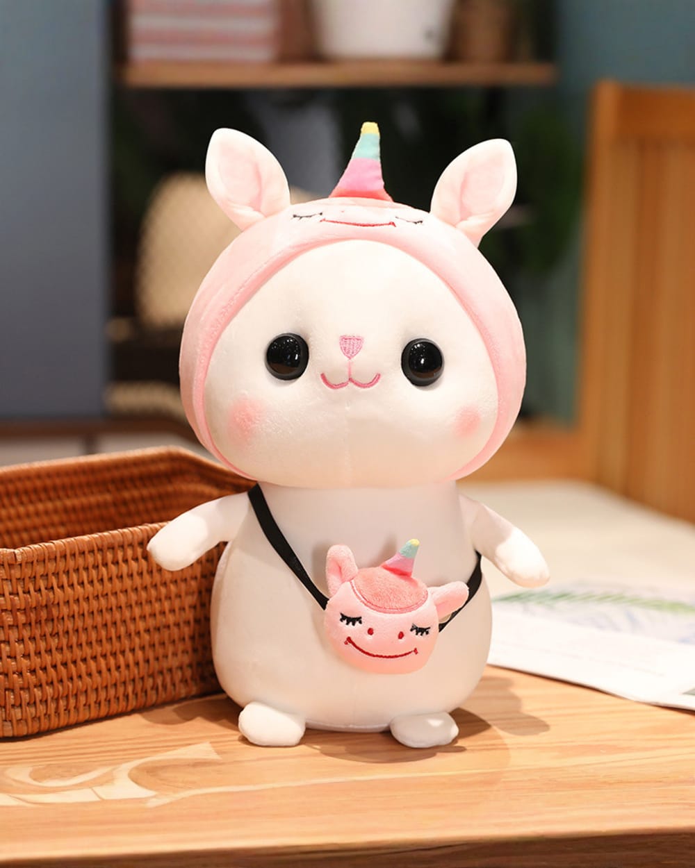 The charming kawaii hatted bunny plushie that’s all set to embark on thrilling adventures with you! Cotton only needs his collection of delightful hats and bags to be ready for a marvelous journey.