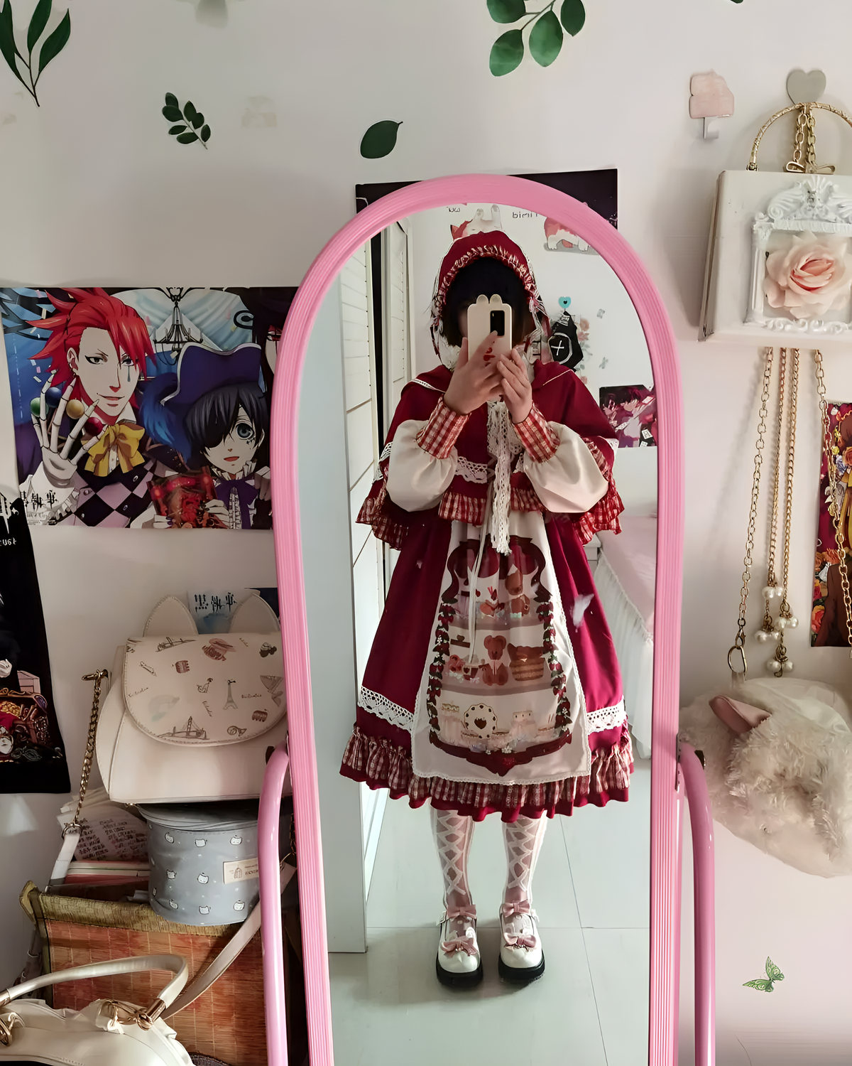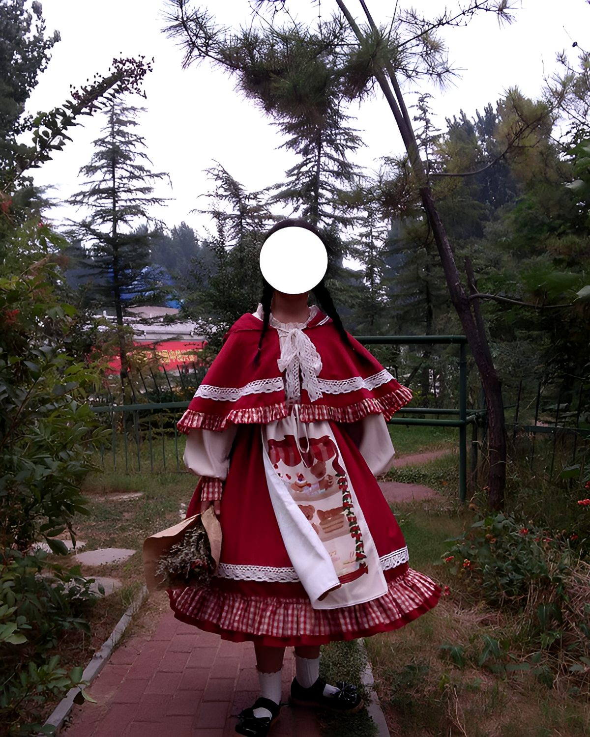 The Crimson Hood Berry Bear OP Set includes a matching cloak and hairband for instant coordination. The lantern sleeves and lace closures offer just enough drama for your favorite mirror selfies. (。♥‿♥。)