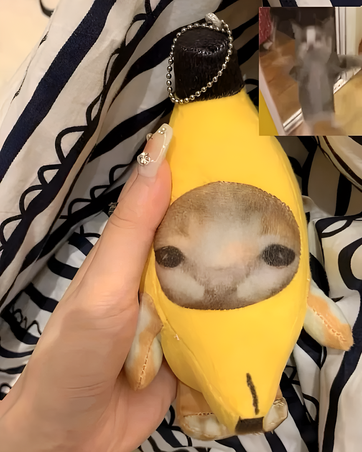 Crafted from plush cotton and stuffed with airy PP cotton, the Crying Banana Cat Bag Charm feels like a soft cloud. It is hypoallergenic and holds up during your chaotic commutes.