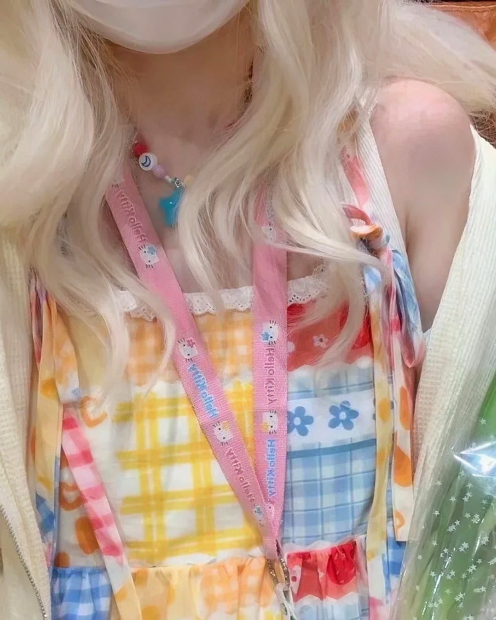 🌈 Pair with white knee-high socks and platform sandals for dreamy decora energy