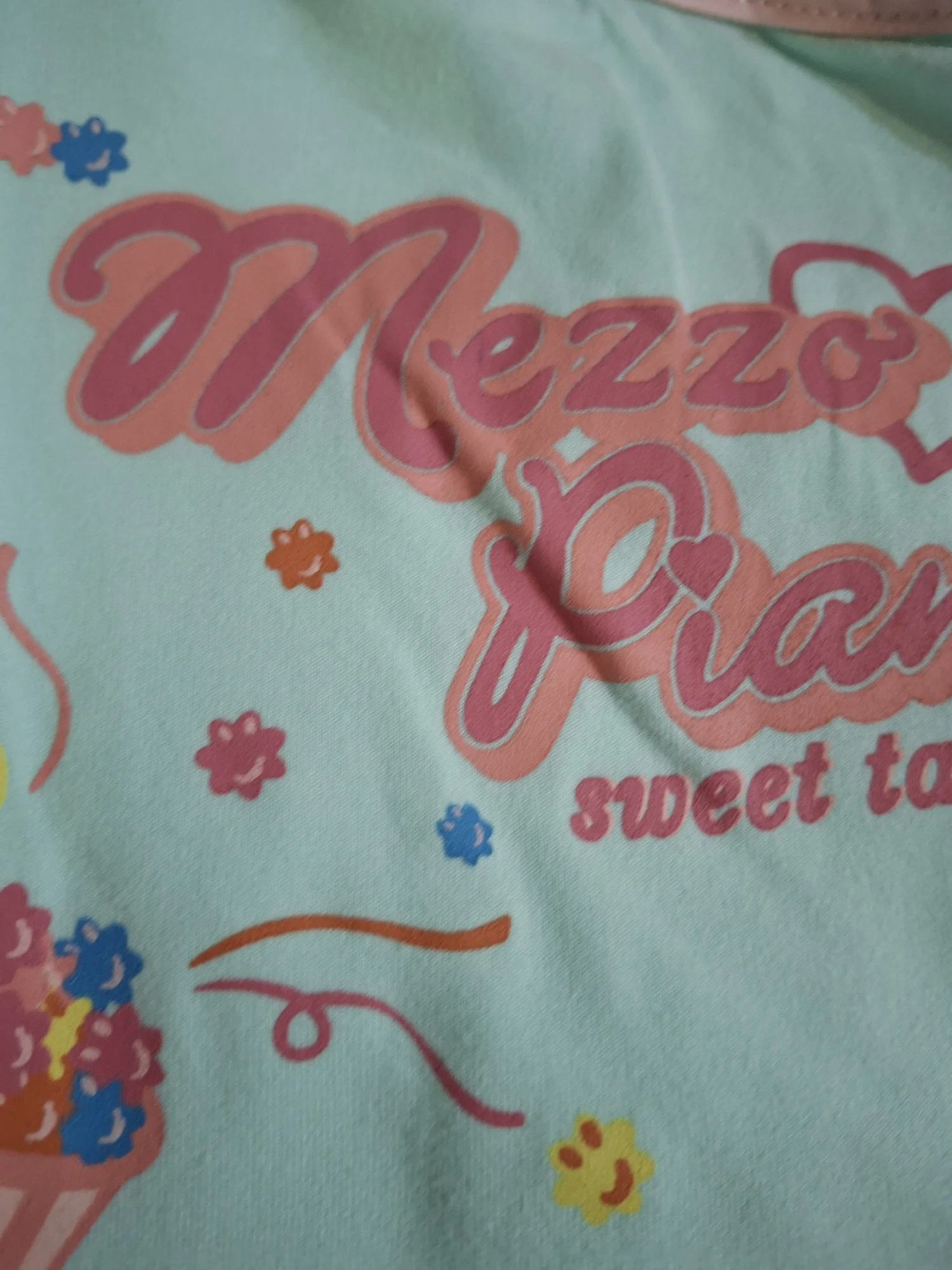 Brighten up your wardrobe with this adorable pastel top that perfectly captures the playful spirit of Harajuku street style. Crafted from soft cotton broadcloth with a hint of stretch, this top features a dreamy mint green base decorated with vibrant retro cartoon graphics. It is a must-have piece for anyone looking to add a touch of nostalgia and sweetness to their daily look.