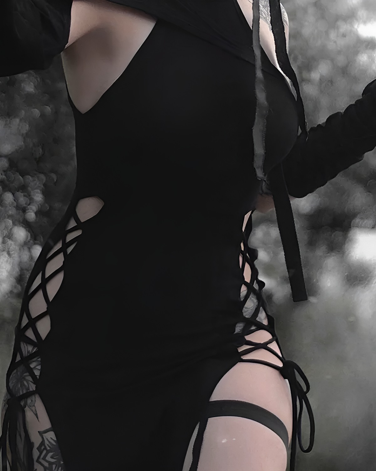 - ✿ Intricate bandage-style side cutouts that create a bold, edgy visual statement.