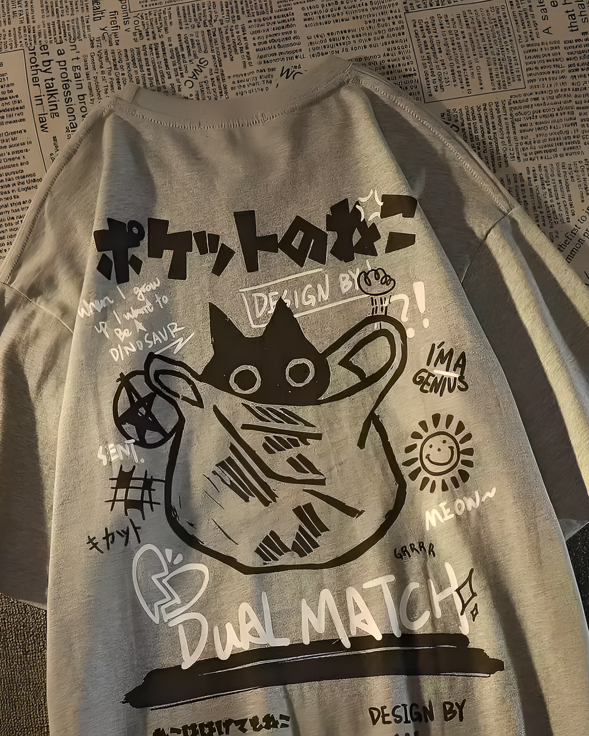 Wearing the Dual Match Neko Bag T-Shirt is a mood booster for burnout culture. It lets you signal your introversion without actually having to say a single word.