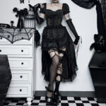 Color: Black overskirt, black top