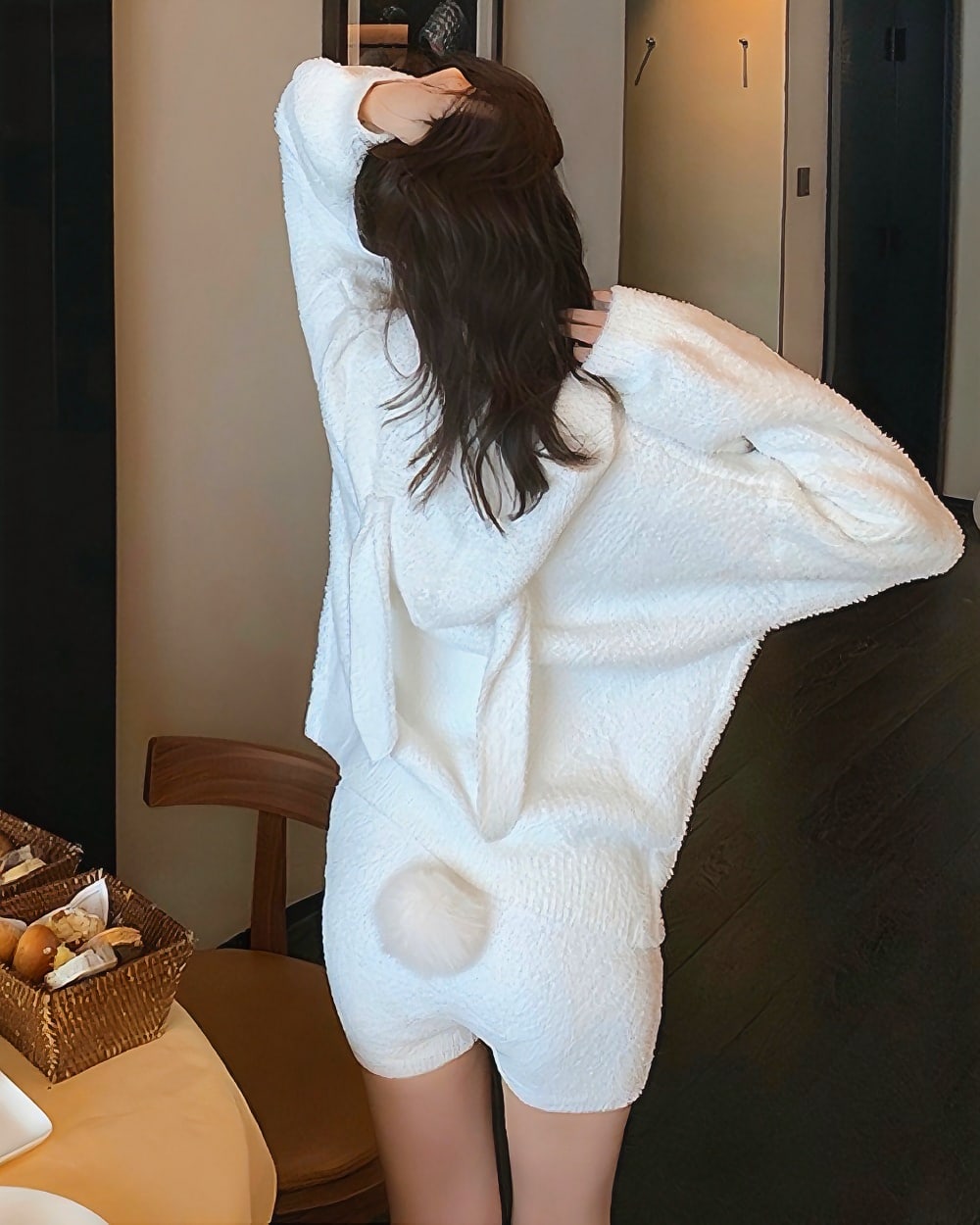 Drift into the dreamiest sleep with our Fluffy Bunny Pajamas—the ultimate soft girl fantasy! (⁄ ⁄•⁄ω⁄•⁄ ⁄) This ultra-cozy pajama set is made from the softest, fluffiest fabric, designed to keep you feeling warm & adorable all night long! With cute bunny ears and pastel charm, you’ll look like the sweetest bunbun ever! ✨(´。• ᵕ •。`)♡
