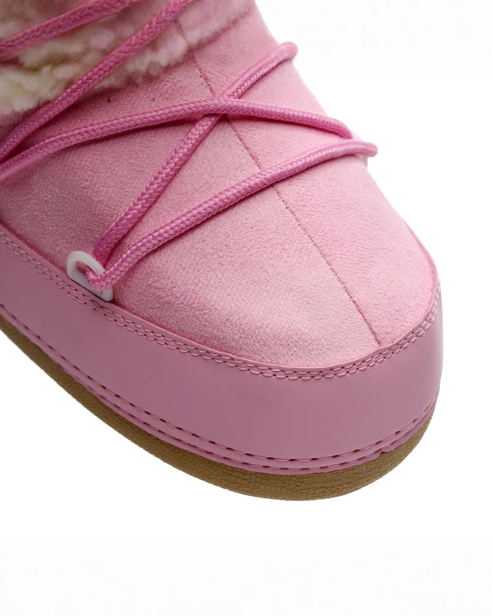 - ✿ Playful lace-up design accented with signature white pom-pom details.