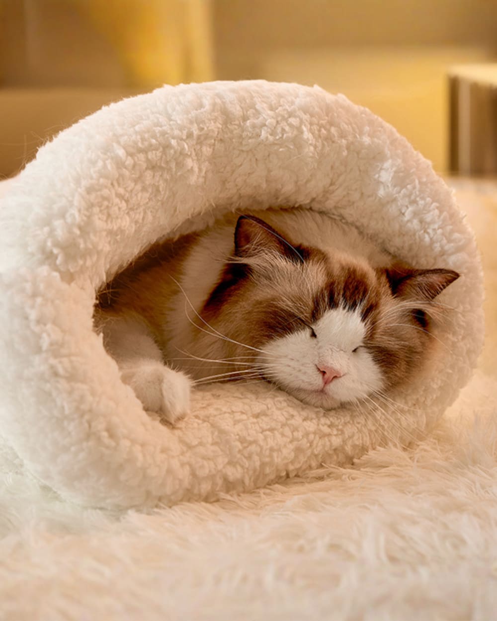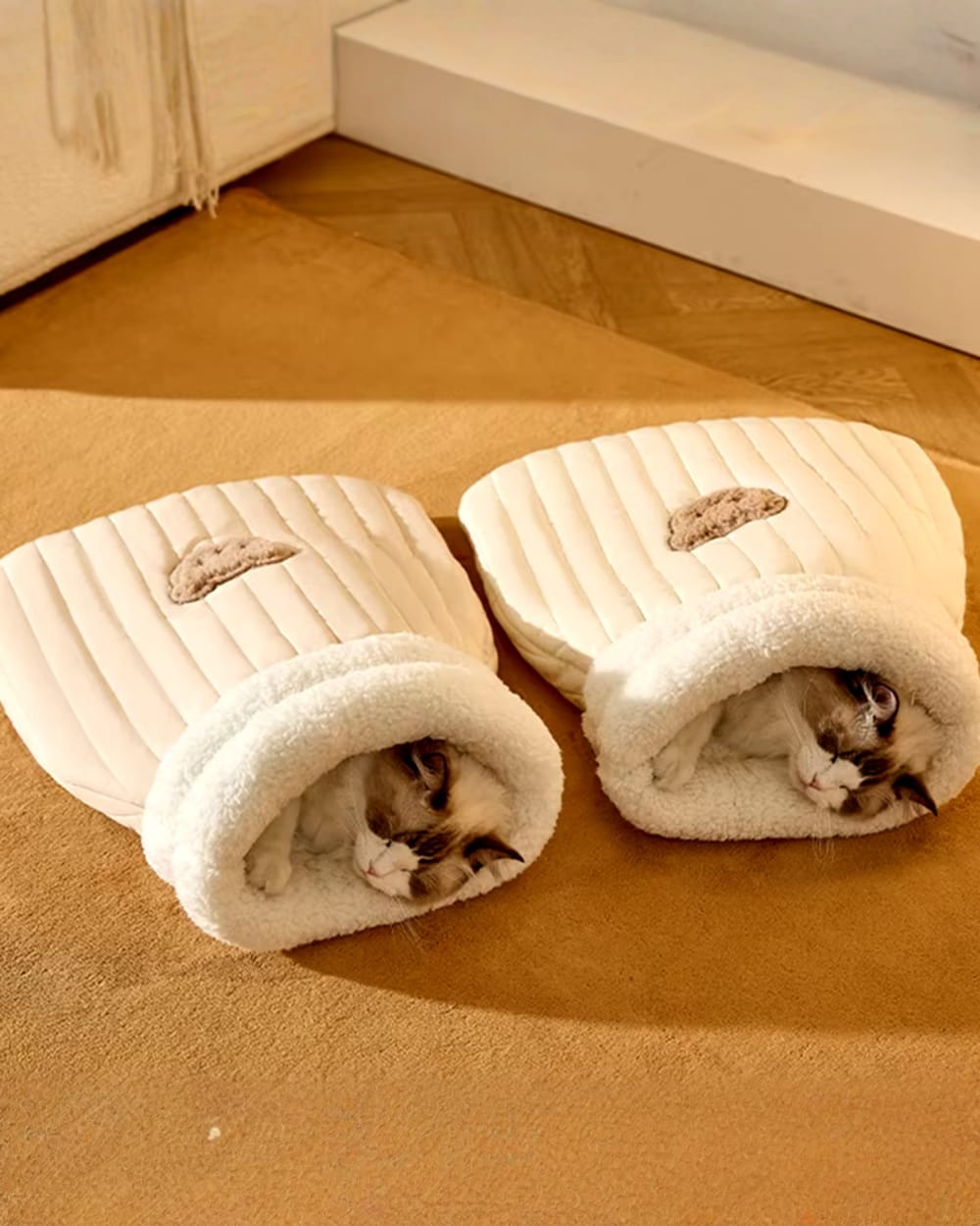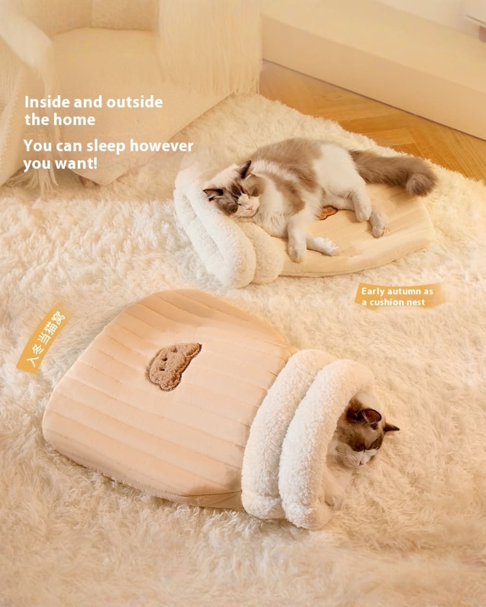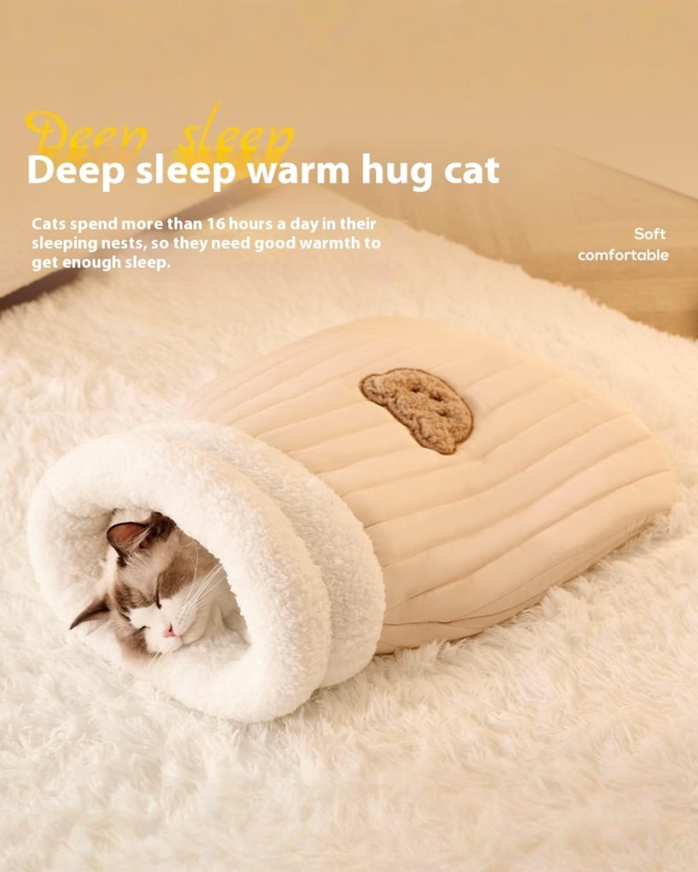 GREAT FOR PET PARENTS – With a spacious interior and a 3D entrance, this cat sleeping bag is ideal for families with multiple pets. Its design allows easier access and better air circulation, ensuring a comfortable sleep for your furry friends.