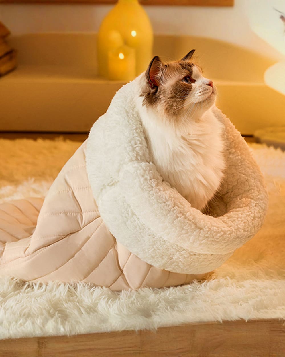 SUPER COMFORTABLE: Your cat will have the best sleeping experience with our cat sleeping bag, filled with PP cotton fiber for ideal support and a comfortable fleece fabric exterior that keeps your furry friend warm, cozy and very comfortable.