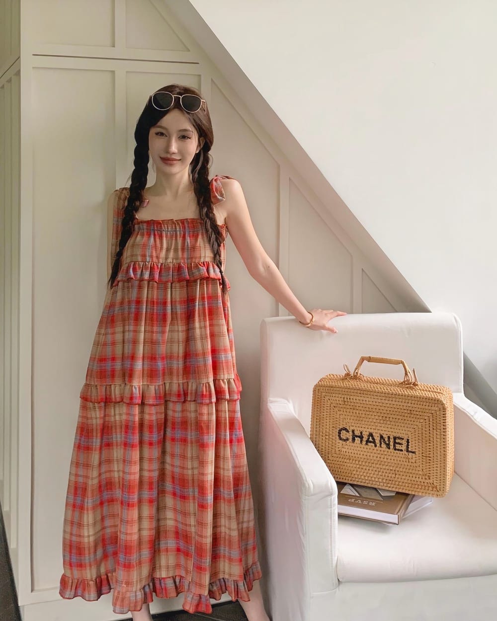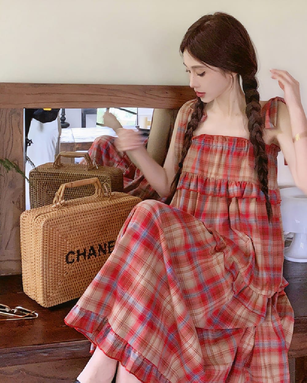 Color: long suspender skirt