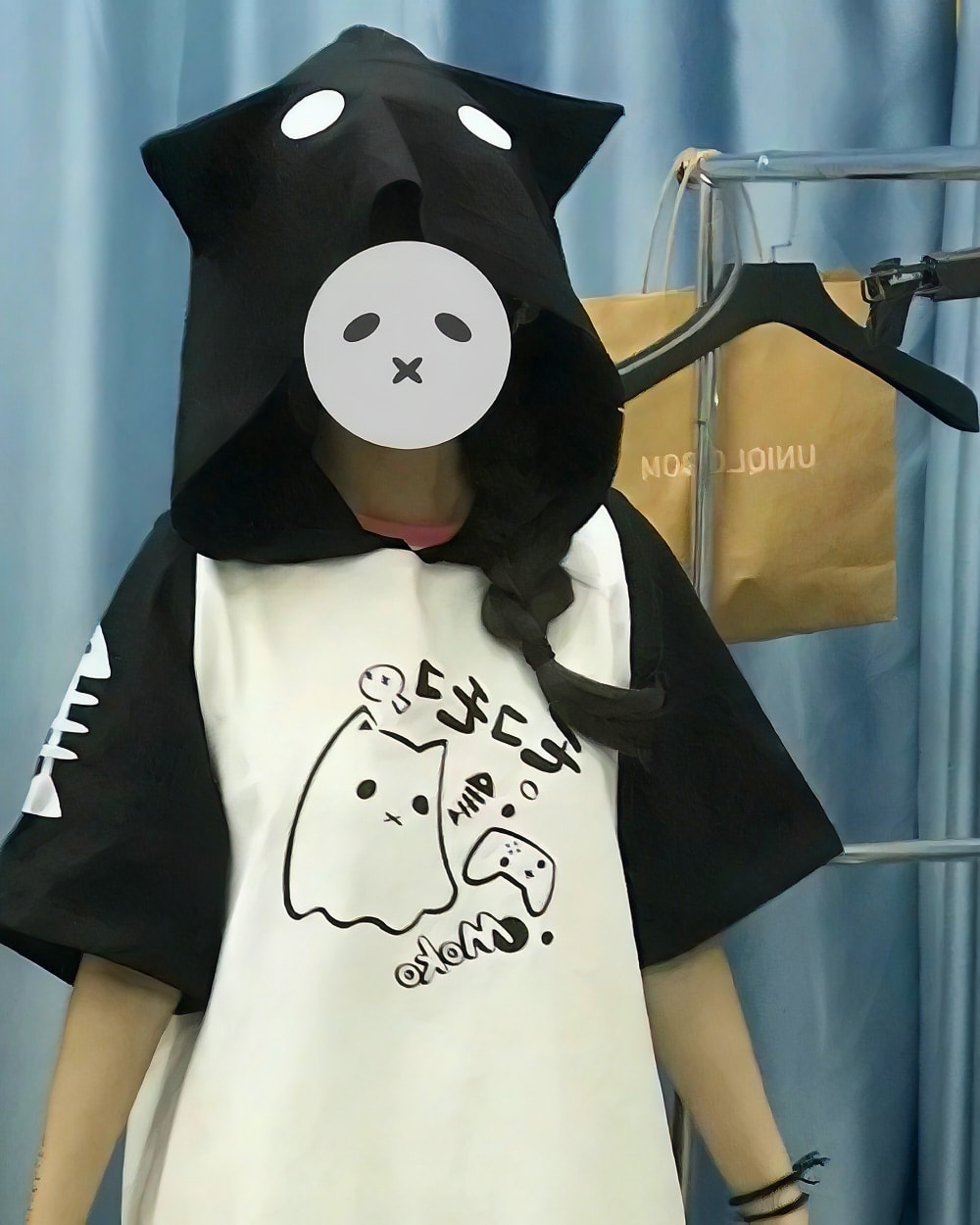 Ghost Neko Hooded T-Shirt – Harajuku Aesthetic (≧▽≦) 👻🐾