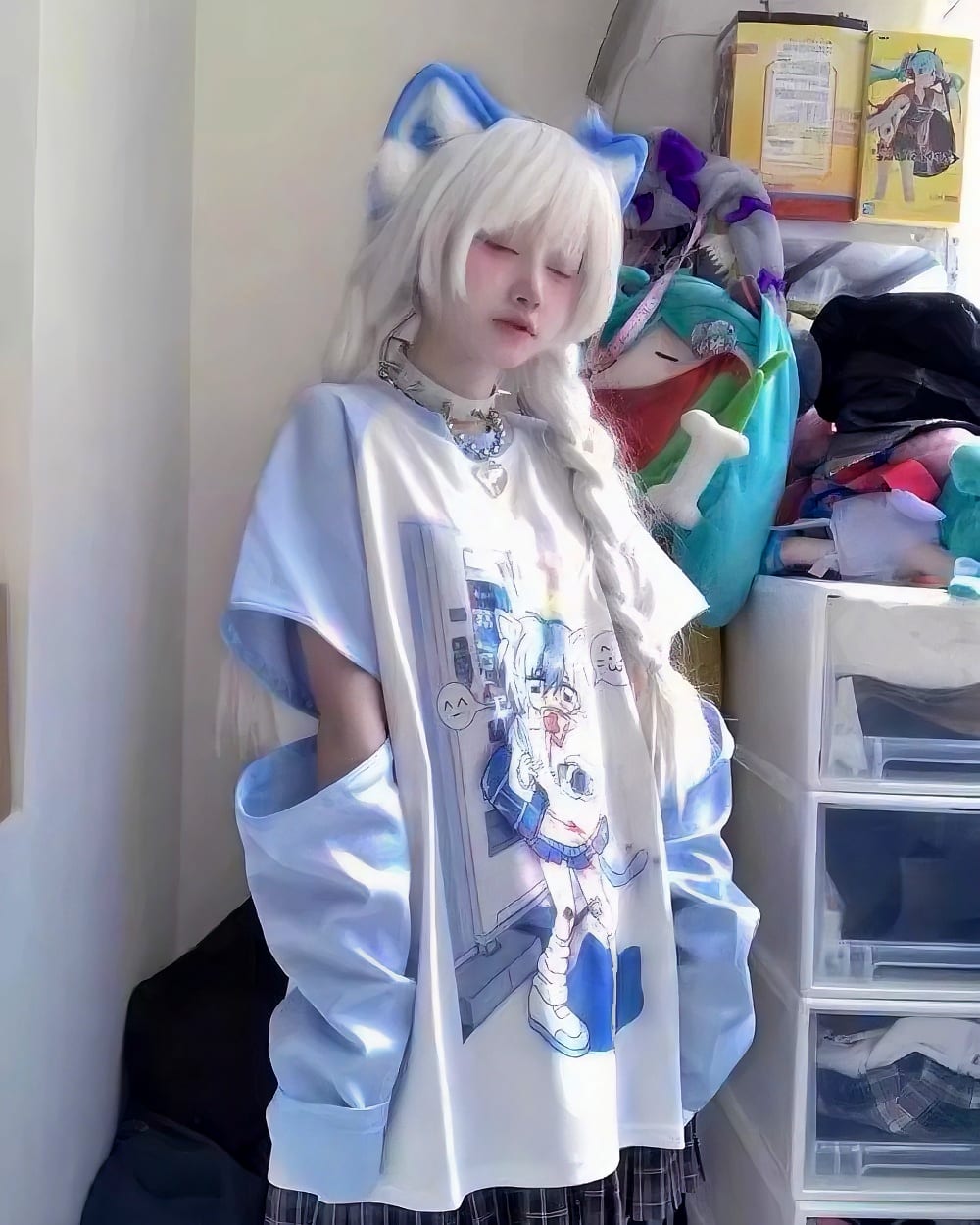 Transform your style with the Harajuku Detachable Sleeve T-Shirt! This ultra-kawaii tee blends playful Harajuku vibes with clever versatility (β§β‘β¦) β‘ Featuring a dreamy blue sky and gray color palette, this top is perfect for anime lovers and cute girls alike!
