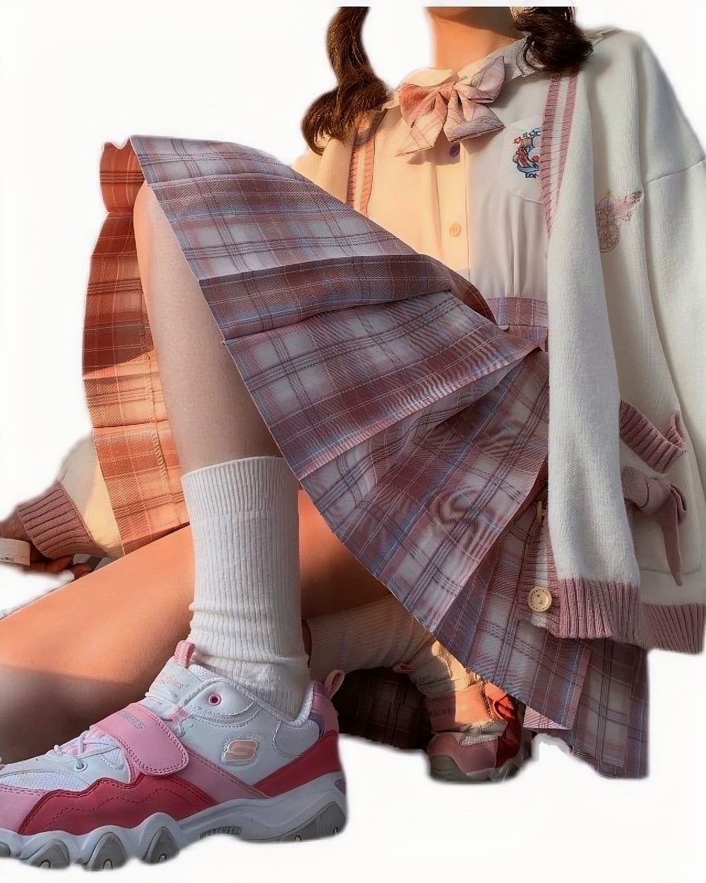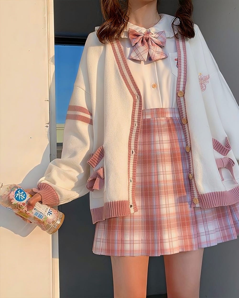 1x Shirt + 1x Cardigan sweater + 1x pleated skirt + 1x bow tie