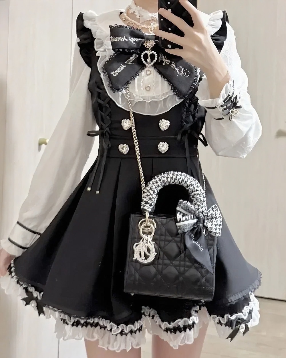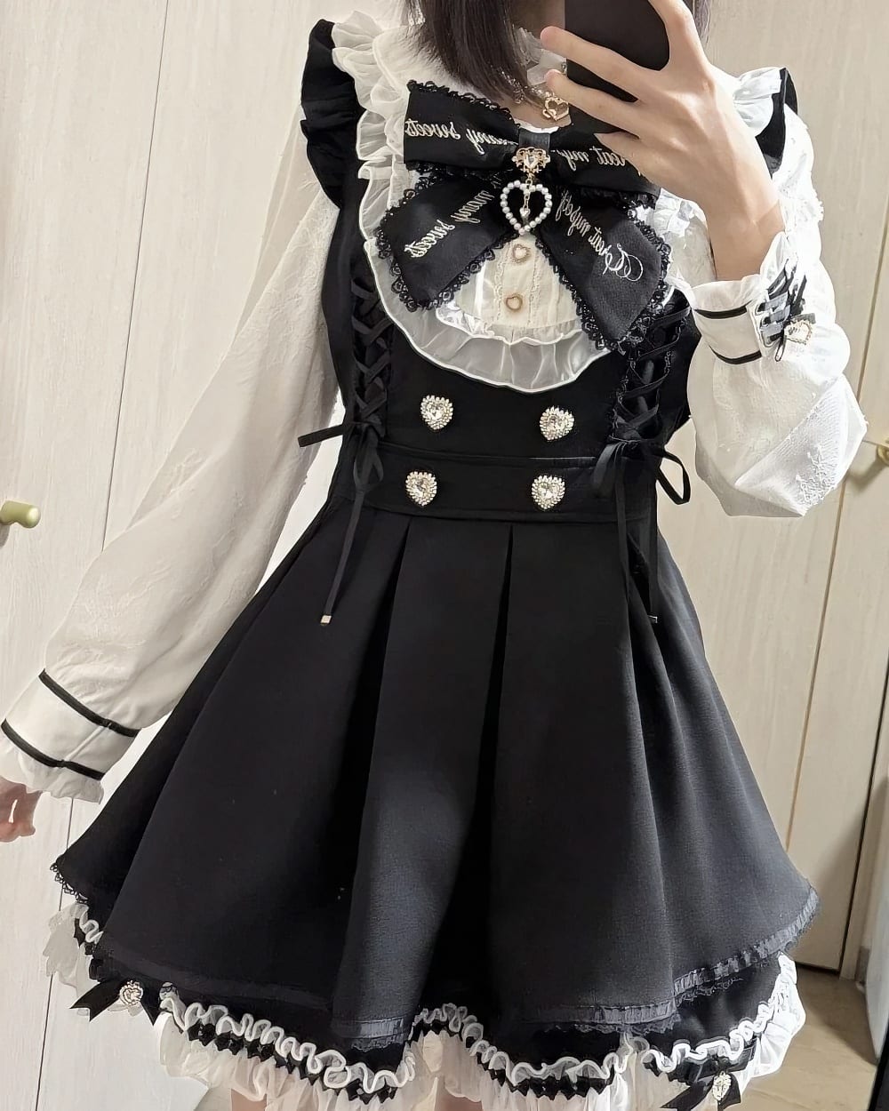 - ✦ Coordinate with silver heart-themed accessories and a simple choker to emphasize the delicate ruffled neckline.