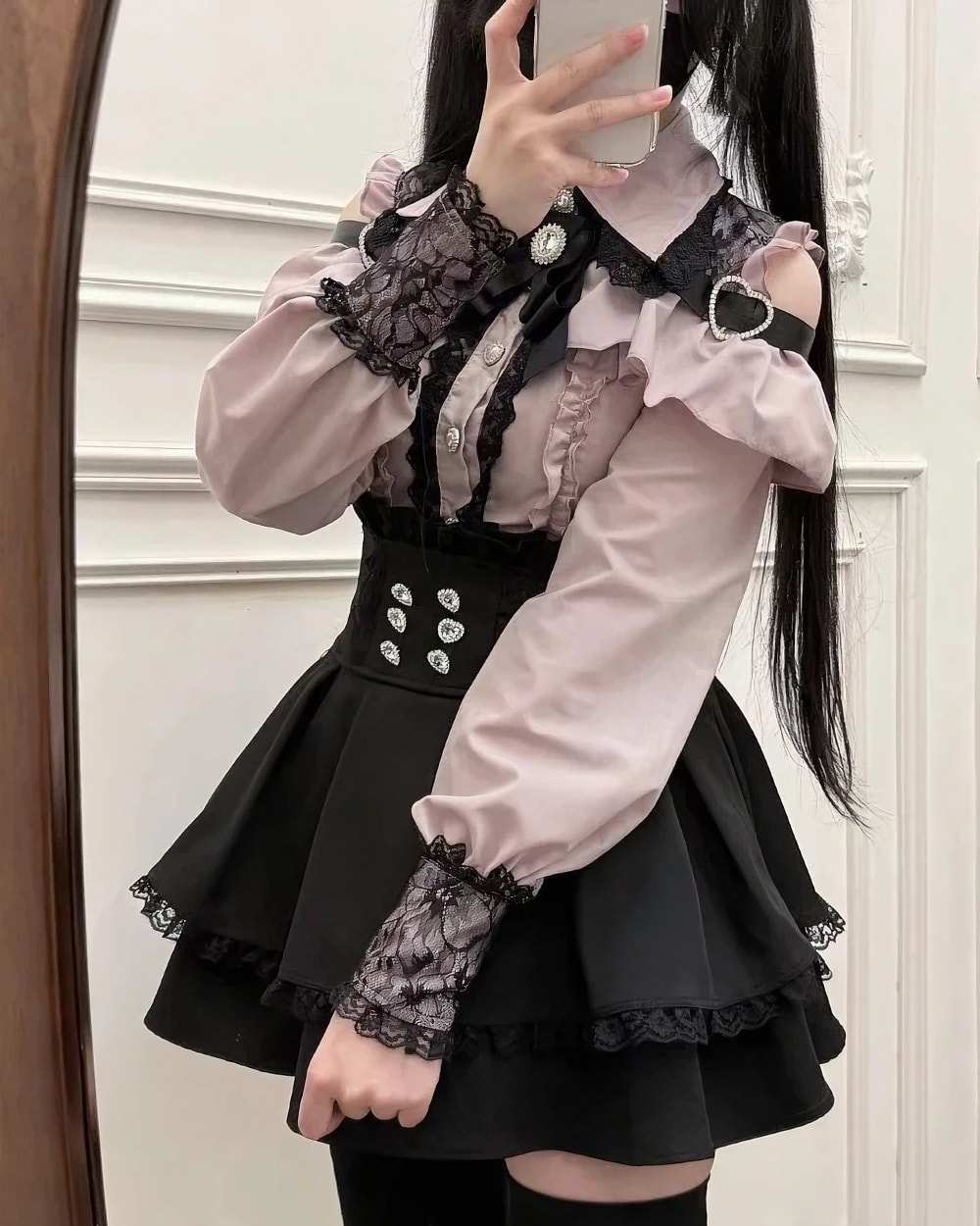 - ✦ Wear with sheer black over-the-knee socks and platform Mary Janes for the ultimate Harajuku-inspired Jirai Kei or Gothic look.