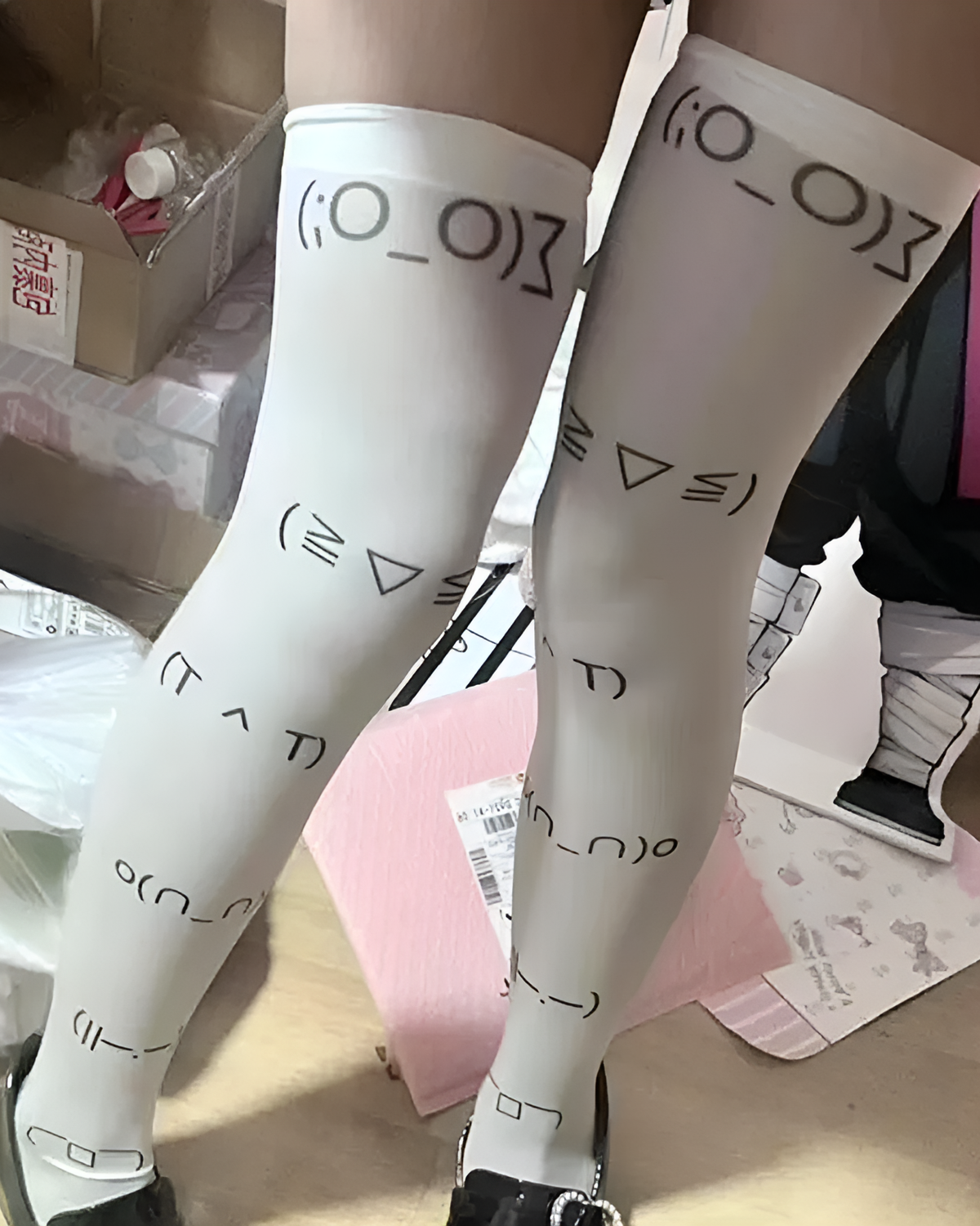 Stop trying to explain your feelings when your legs can do the talking for you. These Kaomoji Stockings are the cure for existential dread and boring outfits.