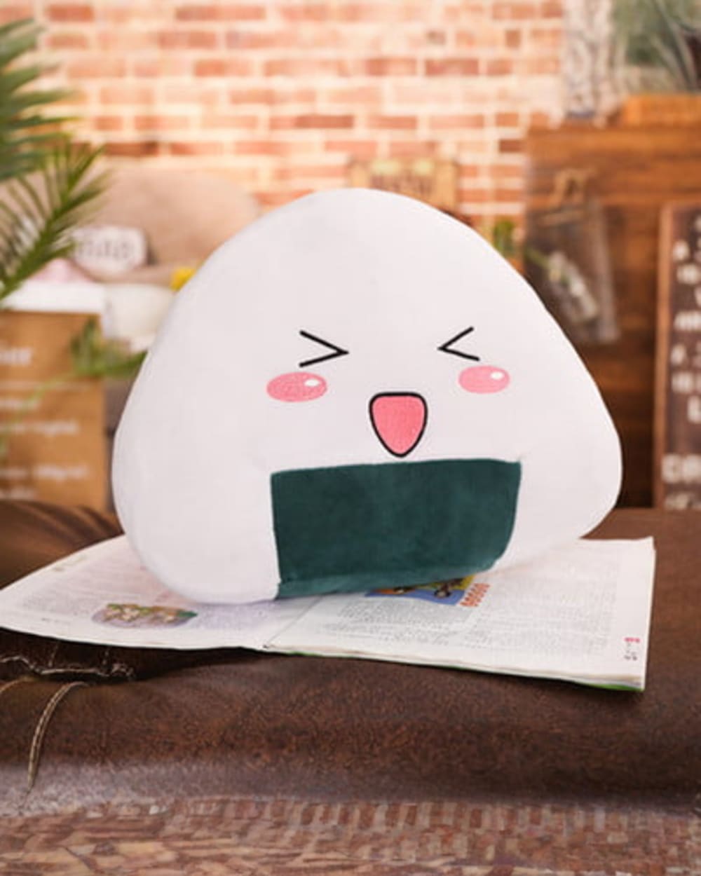 Our onigiri plushie is the perfect size for displaying on a shelf or using as a pillow during long car rides or airplane trips. And, as a bonus, it can also be used as a stress ball to help you unwind after a long day!