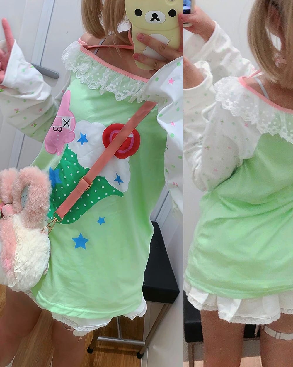 Pair it with a pleated skirt, knee-high socks, and platform sneakers for ultimate cutie vibes! 🍭💖✨ Ready to turn heads and spread kawaii energy? Grab your Sweet Dream Soda Tee today! (๑>ᴗ<๑)💚✨