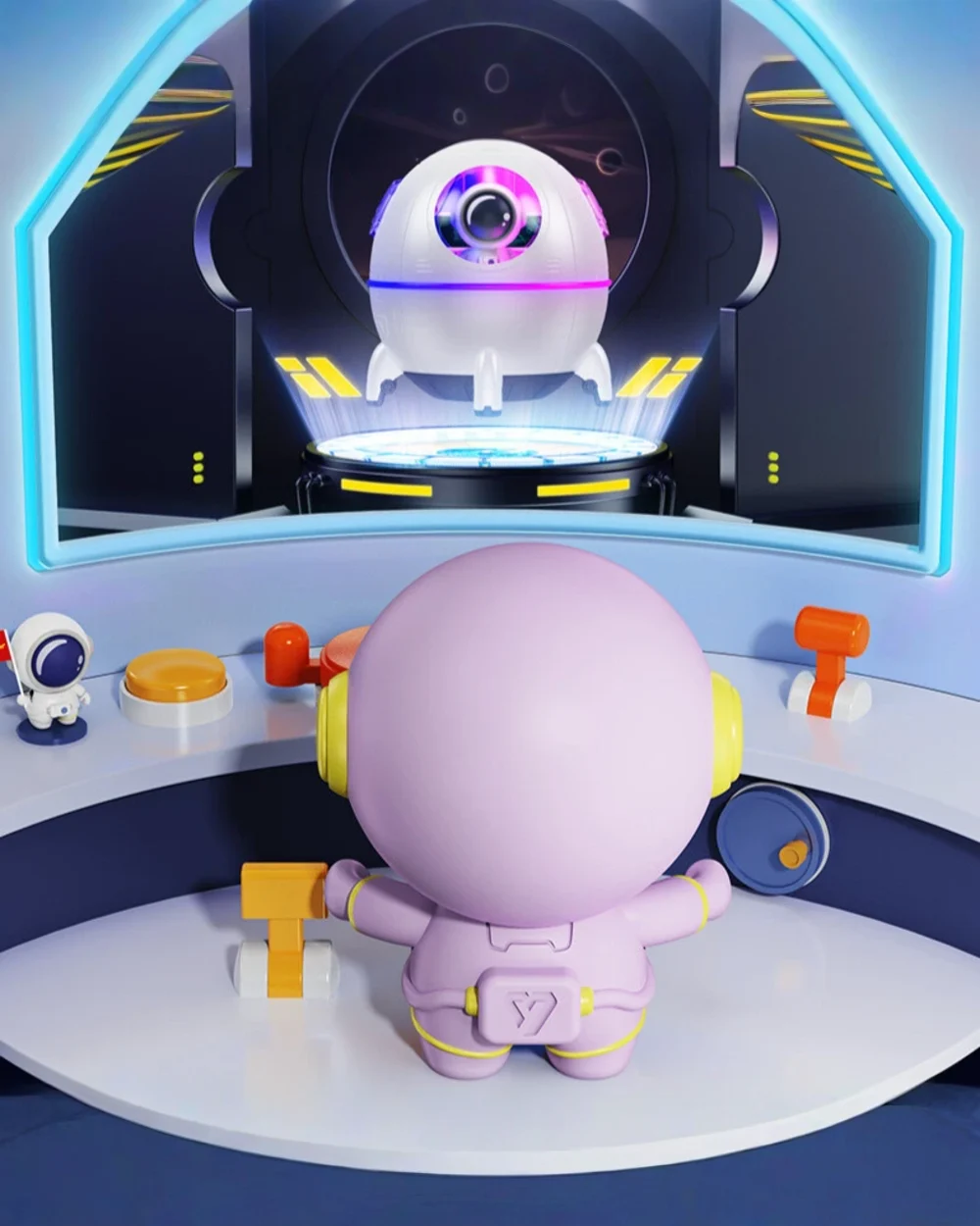 Accompanying this cute device is a little astronaut, complete with a big head and an adorable spacesuit. This chibi companion adds a delightful touch of whimsy and kawaiiness. Watch as the astronaut pops out of the spaceship, capturing hearts and sparking the imagination of children and adults alike.
