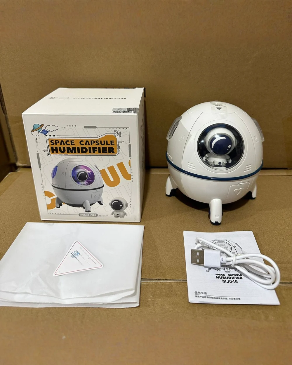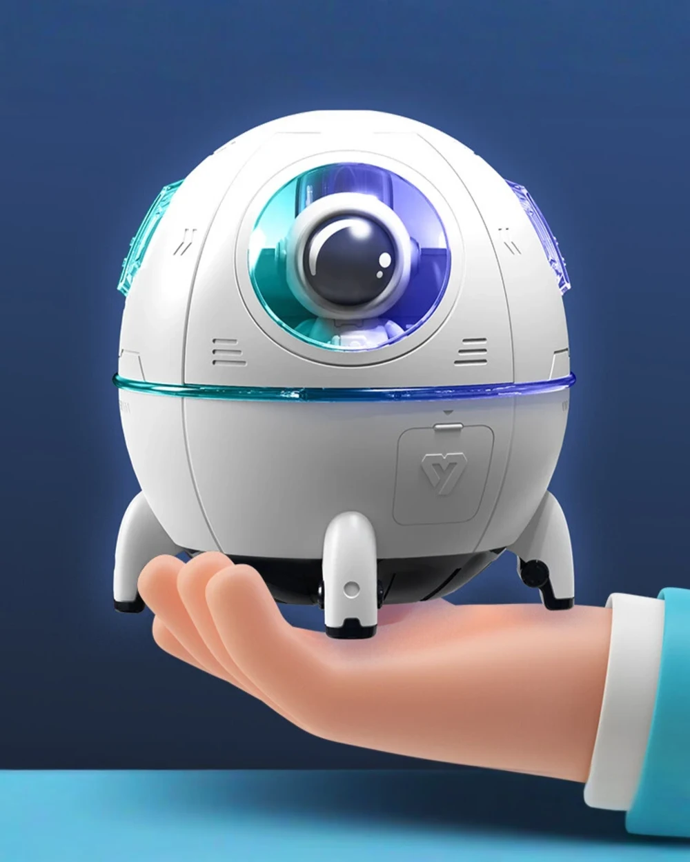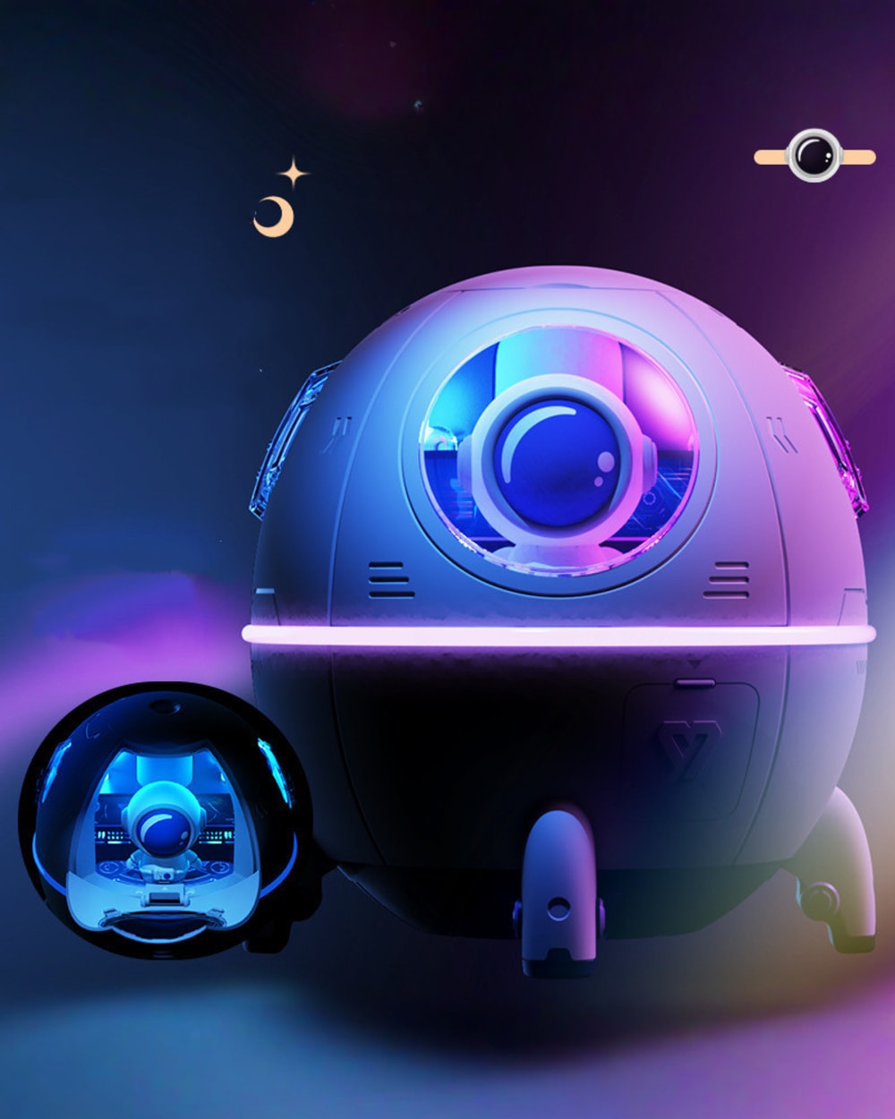 Designed in the shape of a futuristic spaceship, this remarkable device combines functionality, aesthetics, and a touch of whimsy to enhance your living space. With its captivating RGB lights and a charming little astronaut companion, it creates an atmosphere of tranquility and wonder while providing the benefits of aromatherapy and humidification.