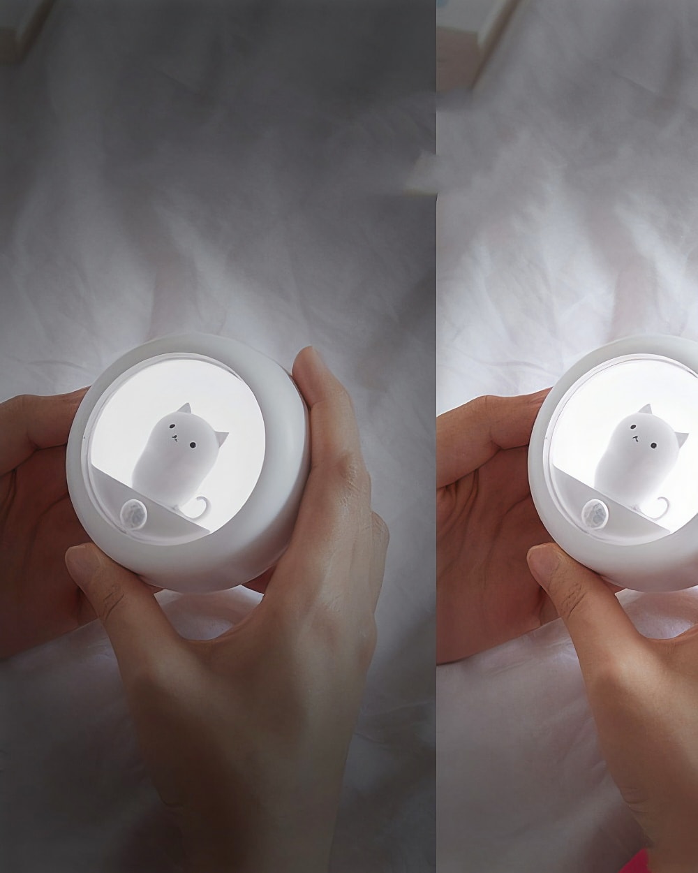 Our Neko Night Lamp has a built-in motion sensor and induction mode. No more fumbling around in the dark, this lamp turns on automatically when someone passes by, making it a great choice for places like the bedroom, stairs or doors.