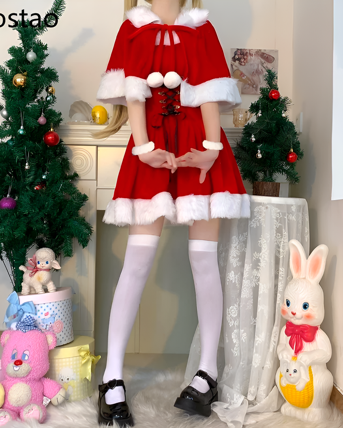 Wearing the Kawaii Shawl Winter Dress is the ultimate mood shifter for high-stress seasons. Escape reality by playing pretend in this sweet holiday-ready fit.