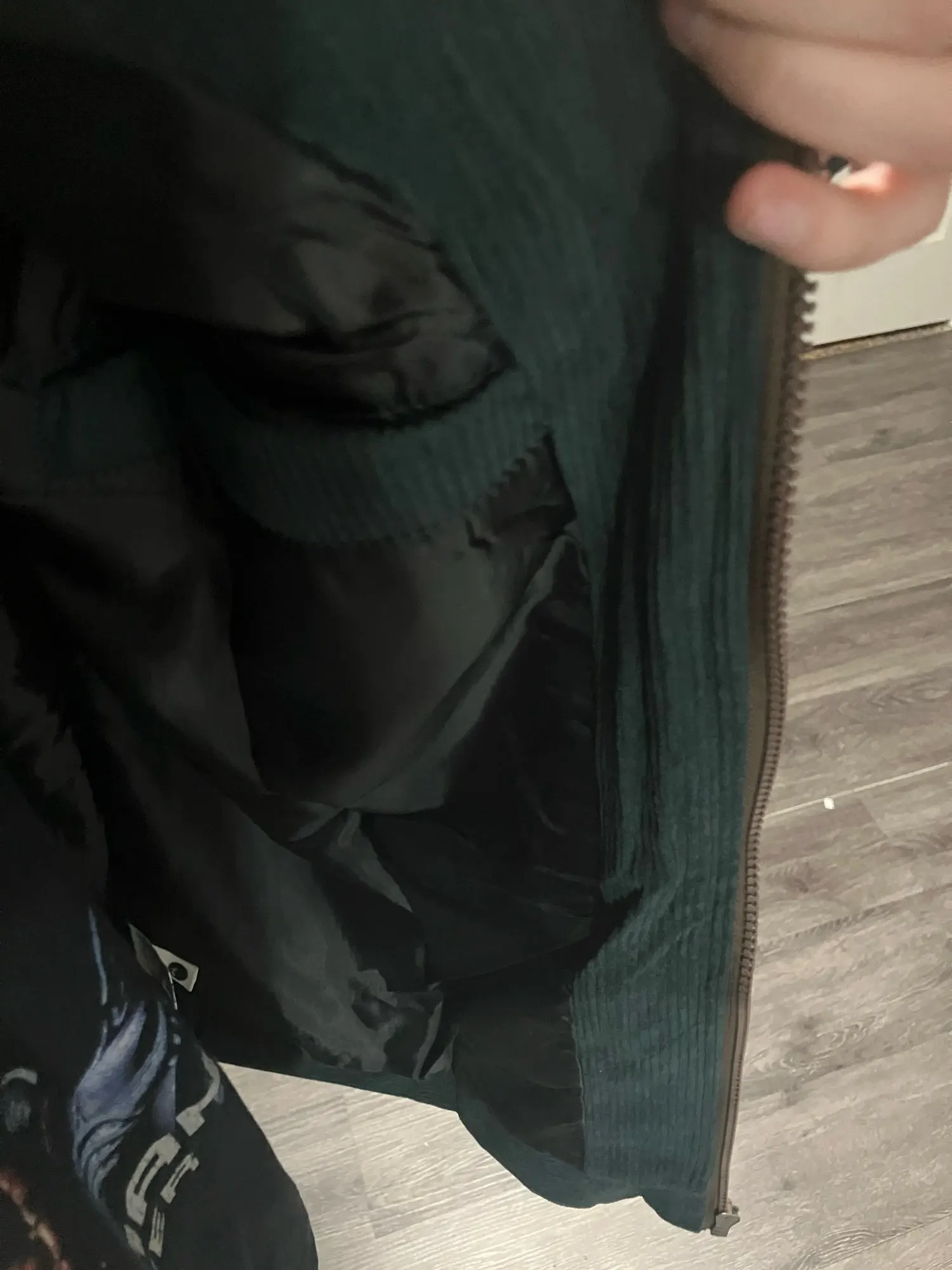 It’s a dark rich green in person. Very warm, while trying it on it already got warm inside. The corduroy is extremely soft as well. Found a secret poc...More