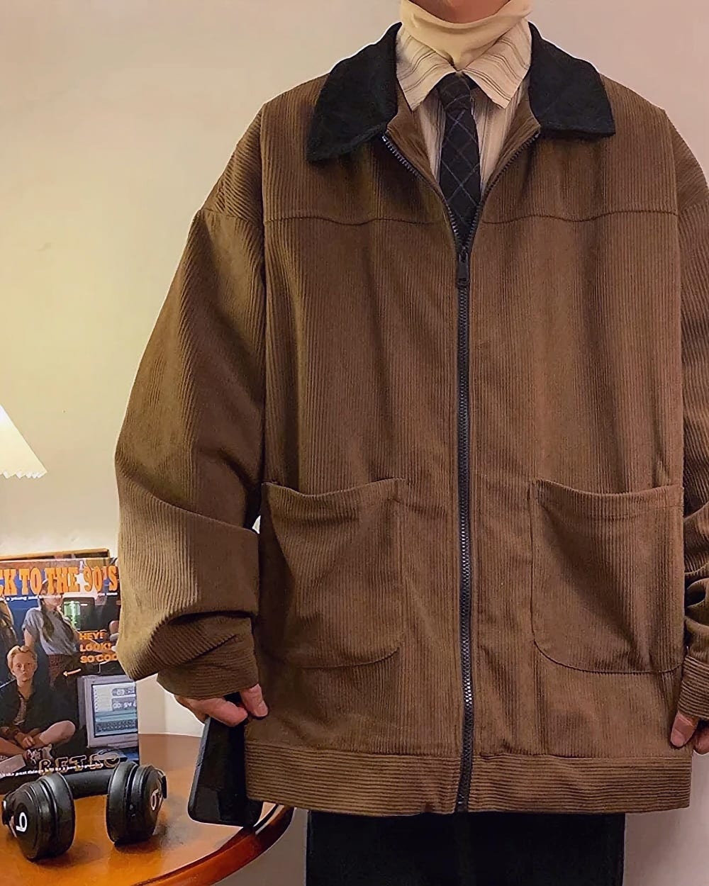 Channel that effortless Korean preppy charm with this sophisticated forest green bomber jacket! The rich corduroy texture and contrast tan collar create the perfect balance between academic elegance and kawaii streetwear vibes. This oversized piece captures that coveted Korean college aesthetic while adding a dreamy, vintage-inspired touch to any outfit.
