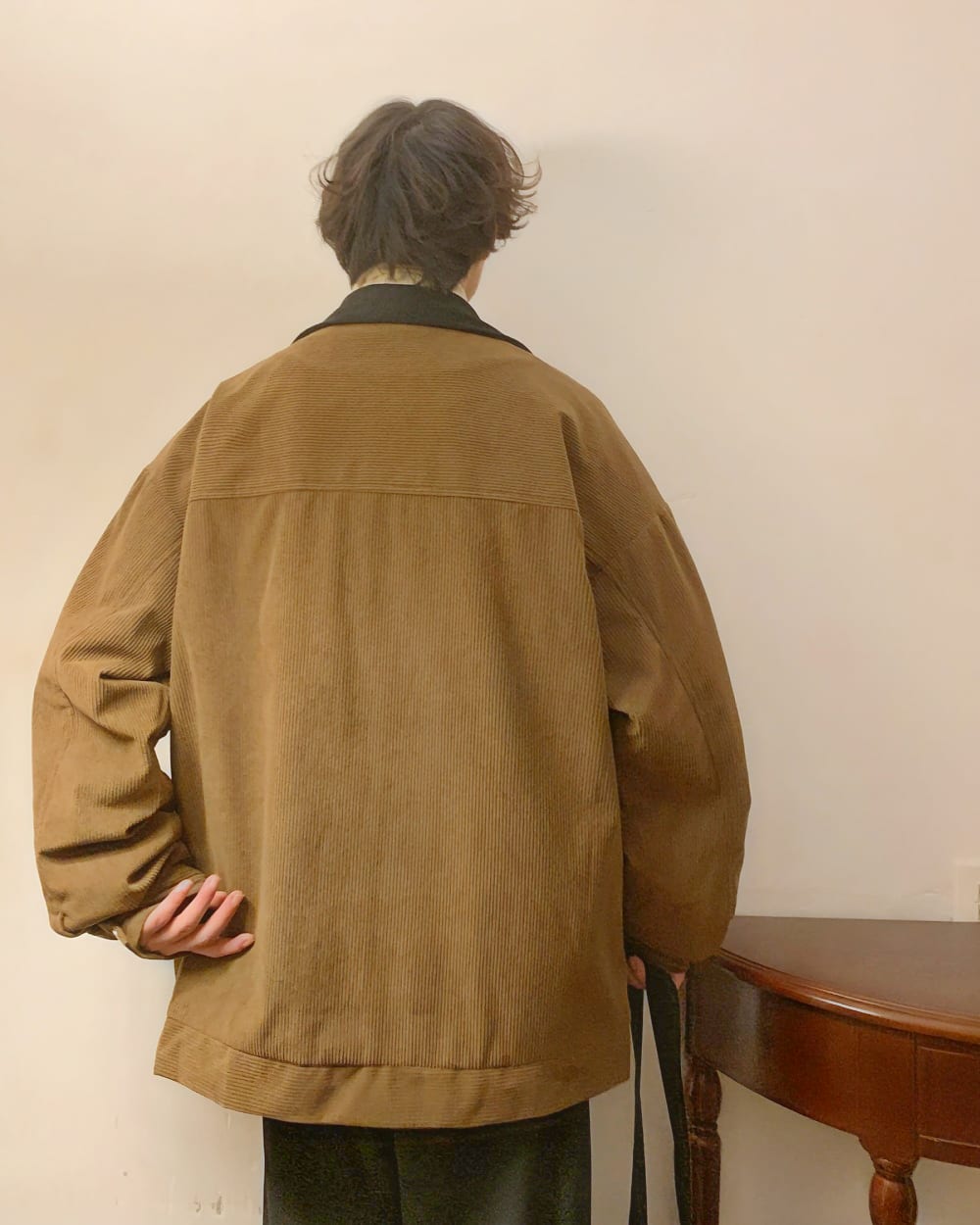 The inner fabric and the fluffy outer fabric are only sewn at the seams, so when you pull the brown outer fabric, the black inner fabric is highly likely not to be pulled together. I wore it with short sleeves, but the inner fabric stuck to the sweat and only the outer fabric was pulled.