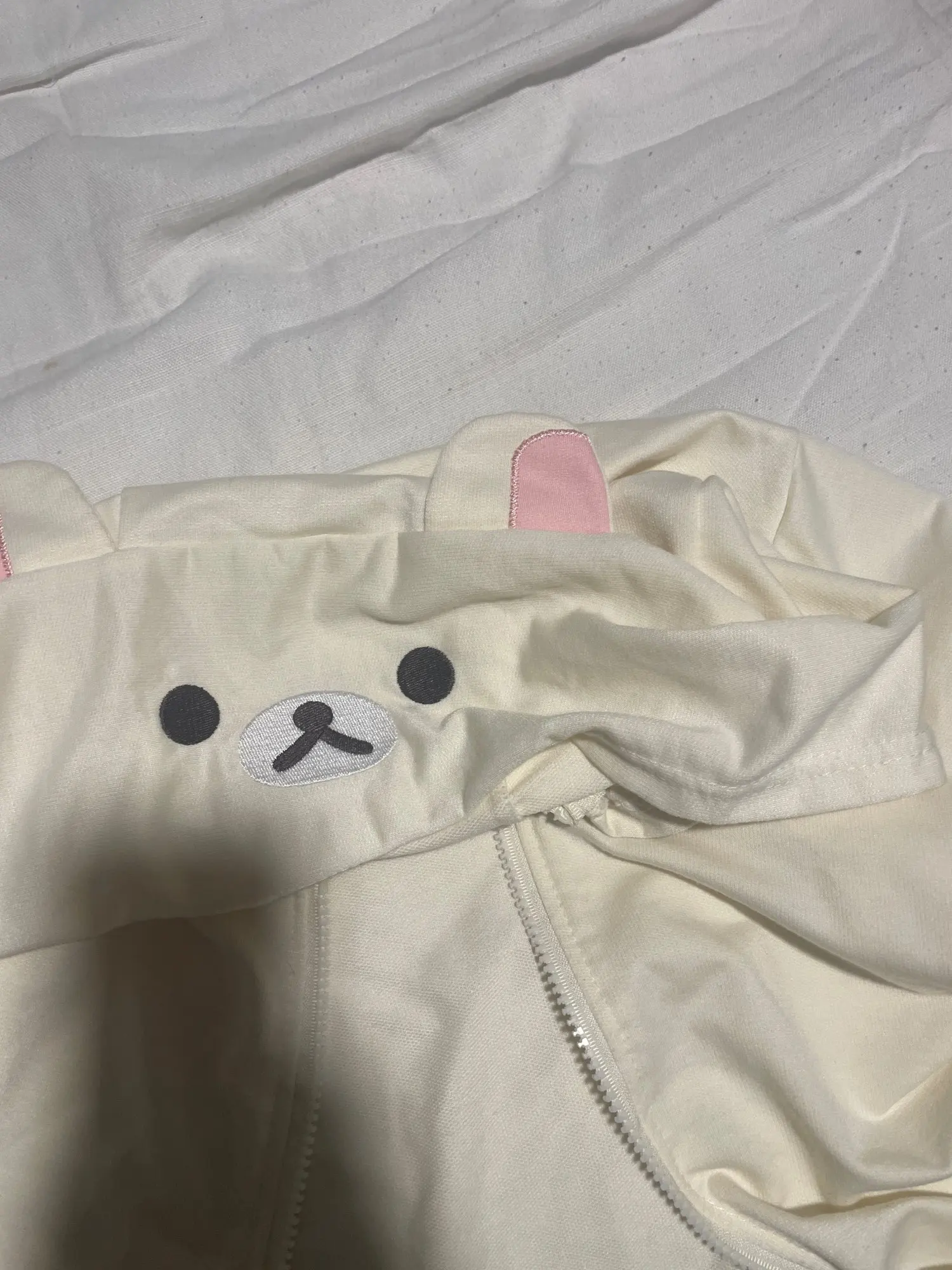 ✿ Detailed with cute bear-face embroidery and playful 3D ears on the hood.