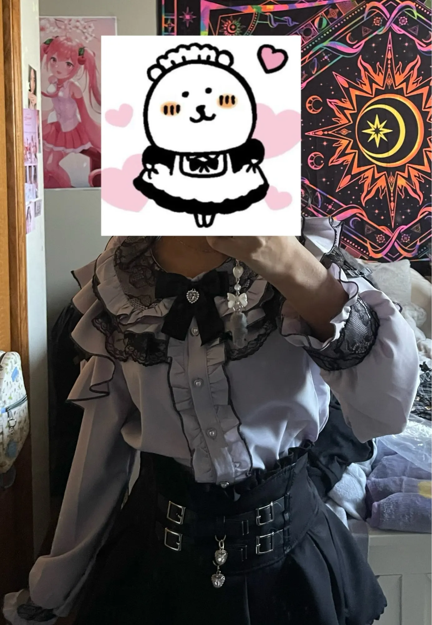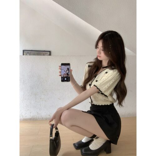 This blouse offers the perfect balance of sweetness and edge, making every outfit feel like a dreamy fashion statement. (✿◡‿◡)