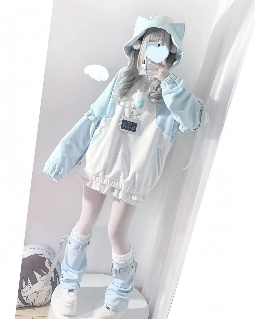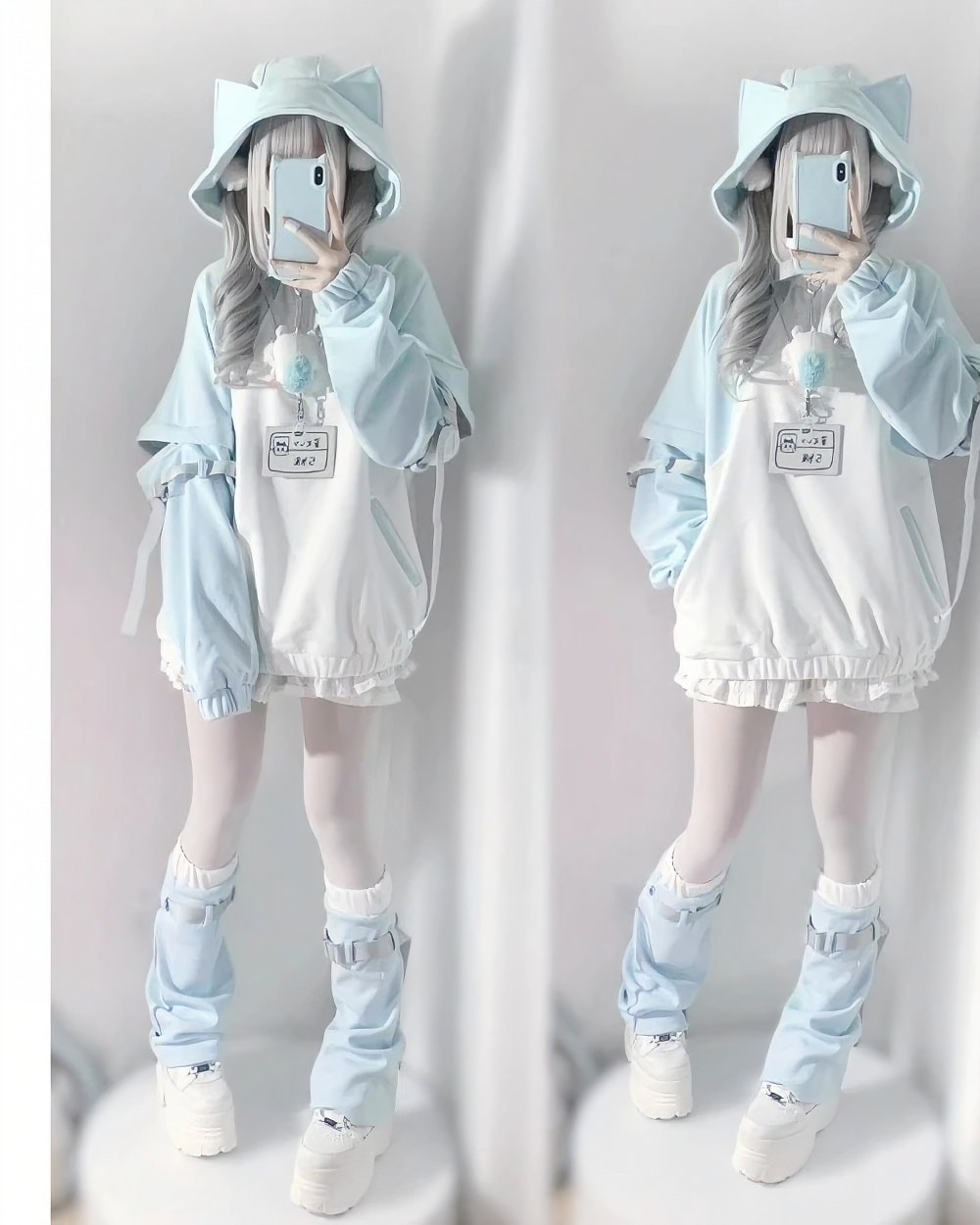 Add a touch of dreamy charm to your wardrobe with this pastel mint hoodie. Designed for fans of the cutecore aesthetic, this piece features high-quality polyester cotton fabric that feels soft and sturdy for daily wear. The oversized hood comes with adorable pointed animal ears and plush pom-poms, creating a silhouette that is both cozy and character-filled.