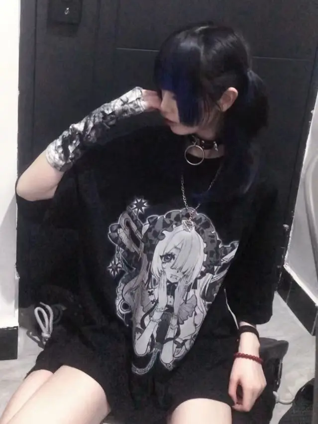 Loose Black T-Shirt – Animecore Aesthetic