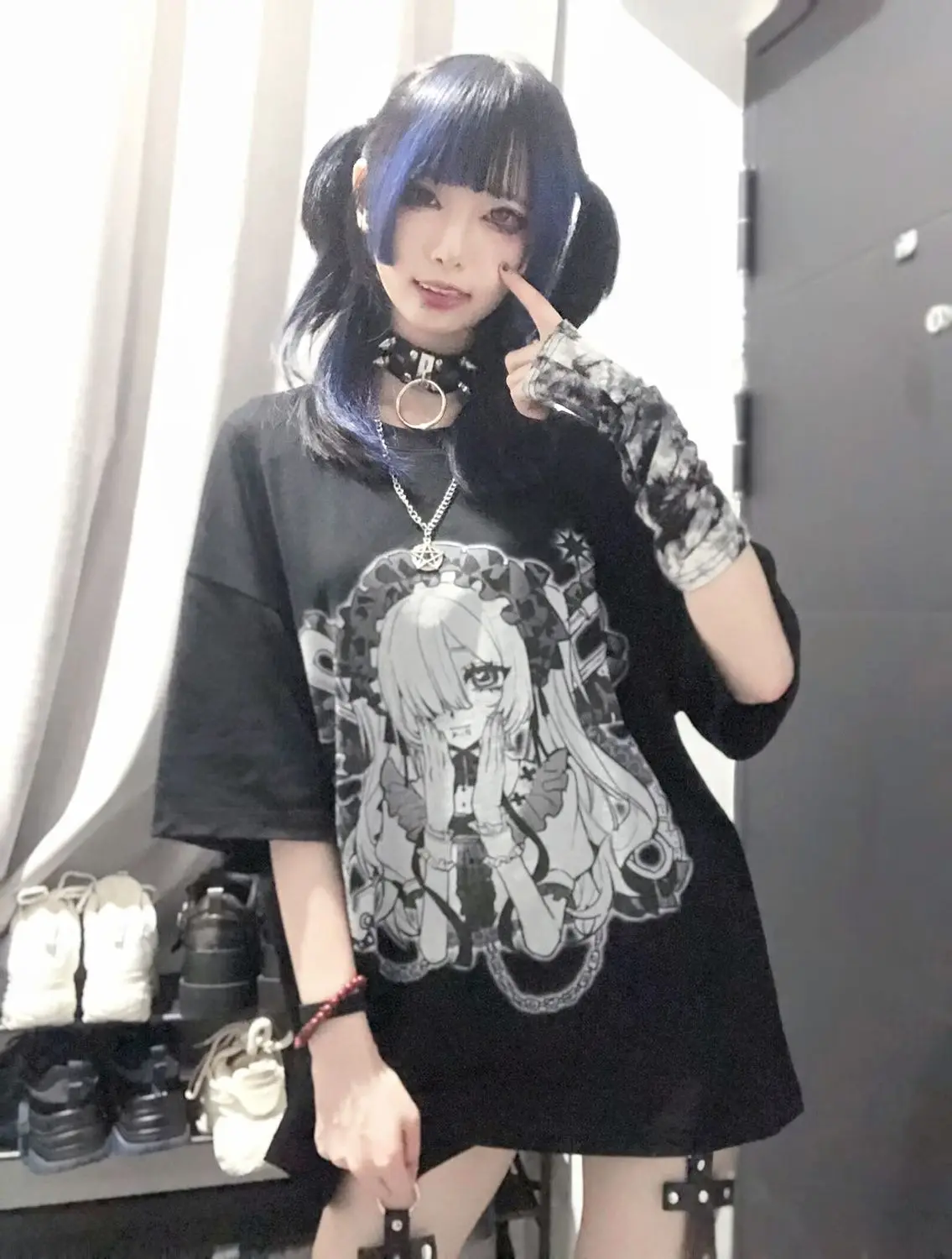 - ✿ Pair with a spiked choker, fishnet sleeves, and platform boots for a classic Jiraikei or Dark Harajuku look.