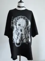 This oversized tee captures the moody charm of Japanese street style with a striking monochrome anime graphic. Made from a comfortable polyester and acrylic blend, the lightweight broadcloth fabric offers a slight stretch that is perfect for warmer summer days.