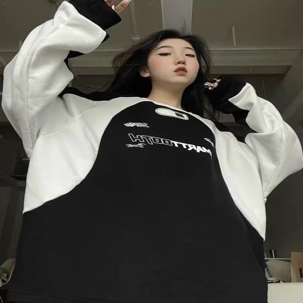 Slip into the Loose Sportswear Sweatshirt and rock that effortlessly cute Korean aesthetic every day~ 💖🌈💼💫