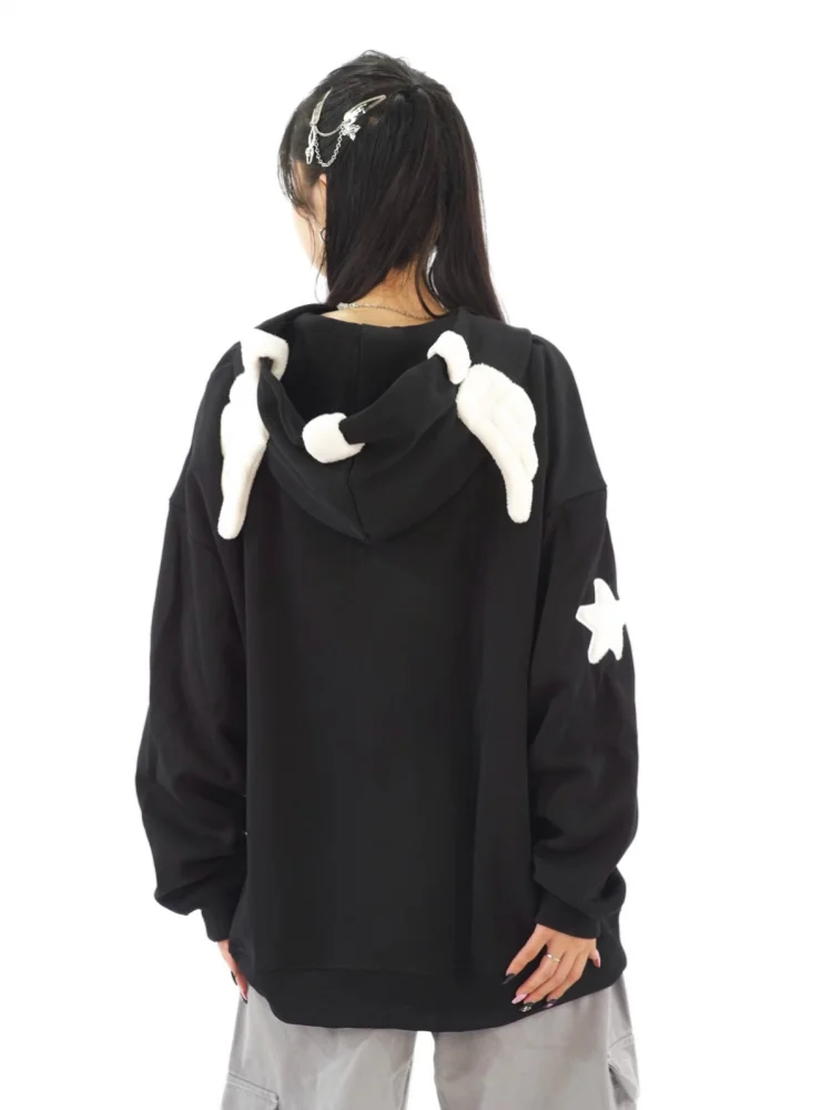 Loose Thick Feathered Hoodie – Harajuku Aesthetic