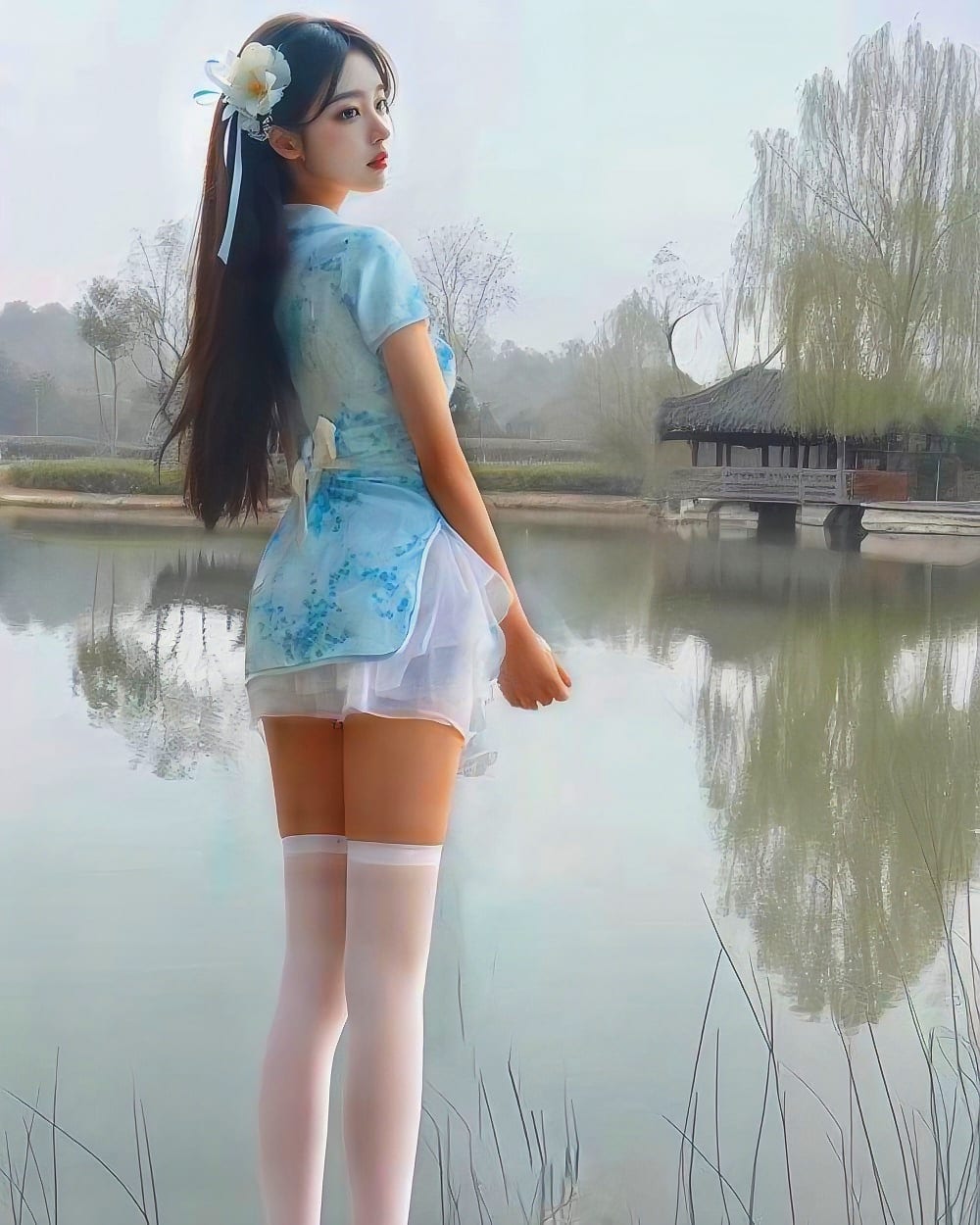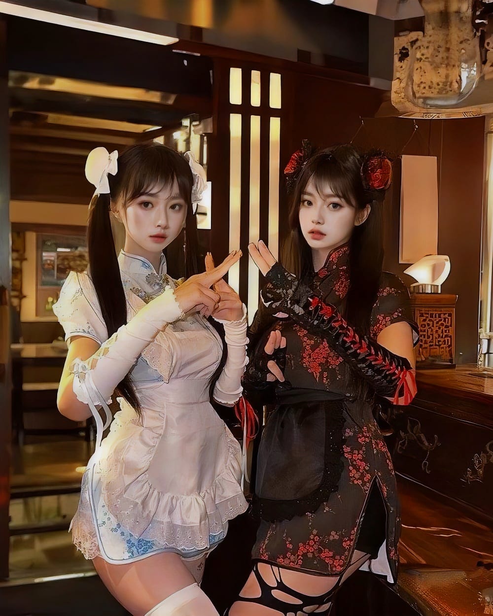Color: Chinese Niang-blue and white apron, Chinese Niang-black and black apron,
