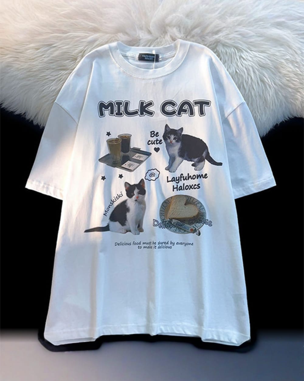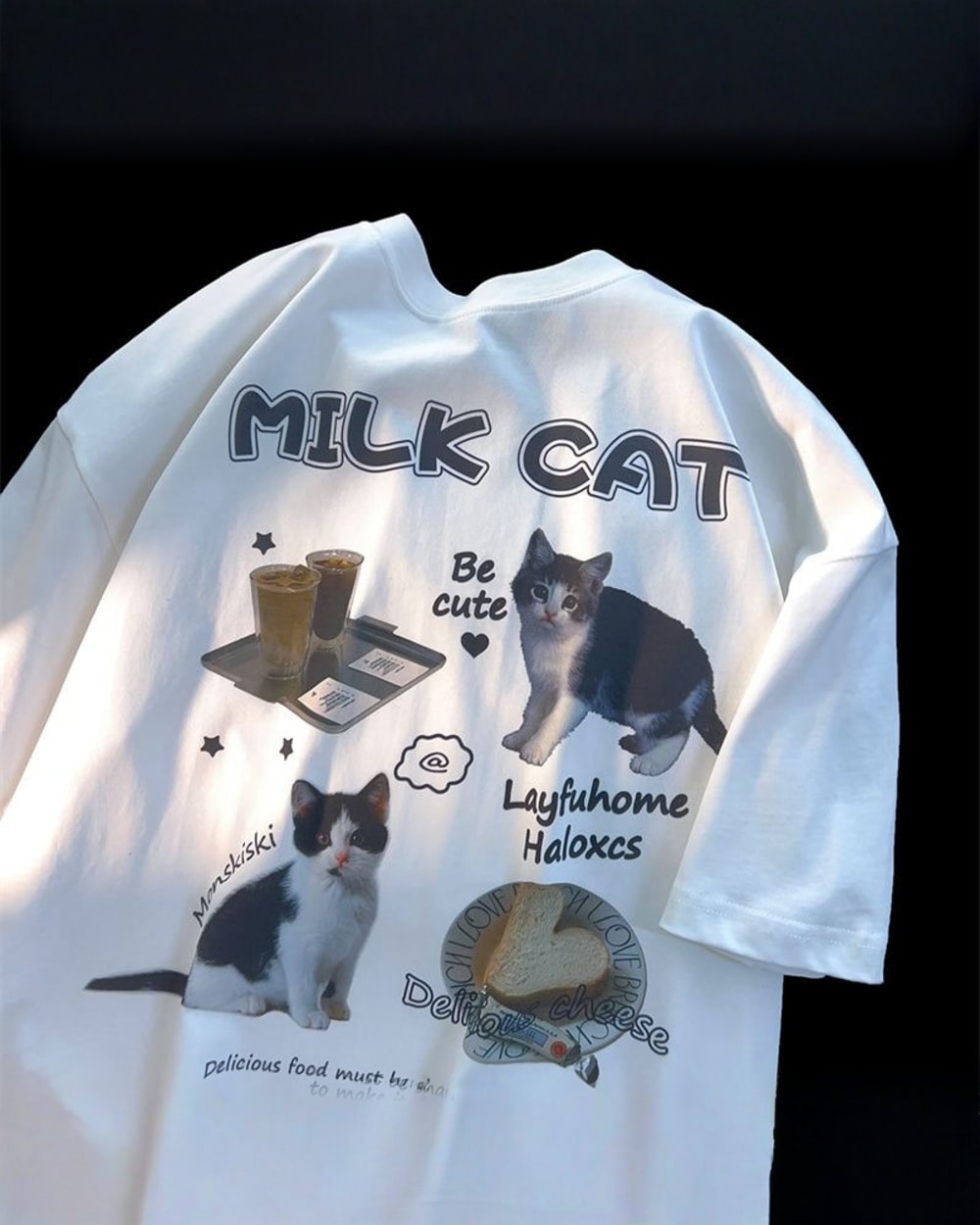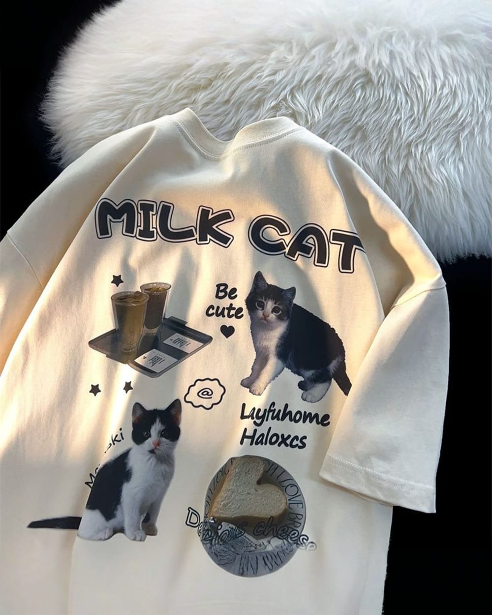 Slip into the Milk Cat T-Shirt and carry your cuteness with confidence—because every day is better with cats and carbs~ (。•ﻌ•。)ฅ♡🍞💫