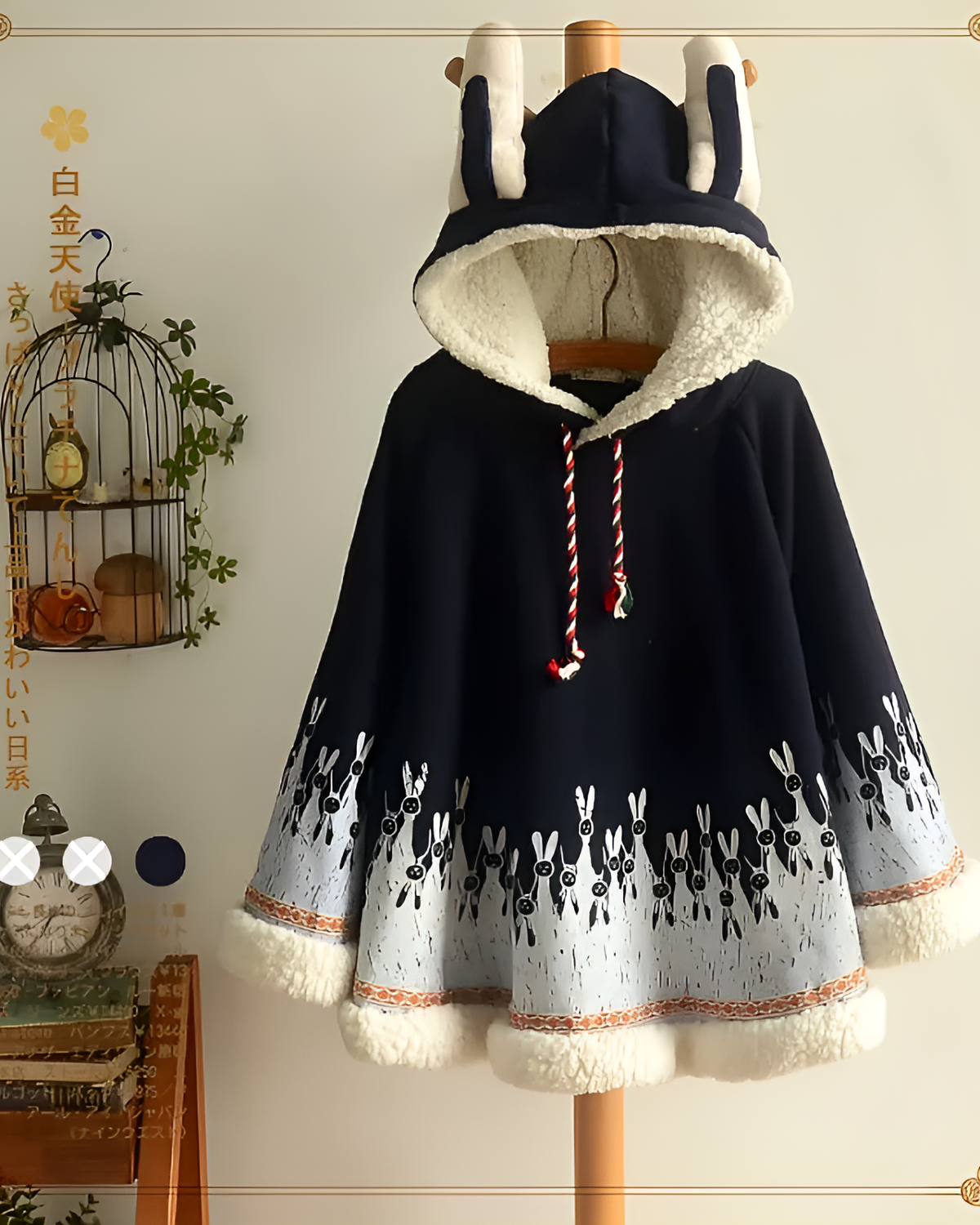 The hoodie features adorable rabbit ears and a moody bunny print that measures 60cm in length. Go ahead and let your inner creature run wild ꒰ ˶• ༝ •˶꒱
