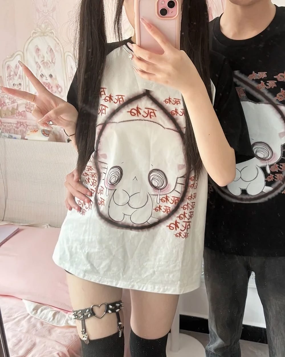 Neko Print Matching T-Shirt – Cutecore Aesthetic