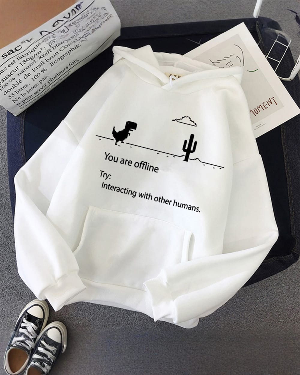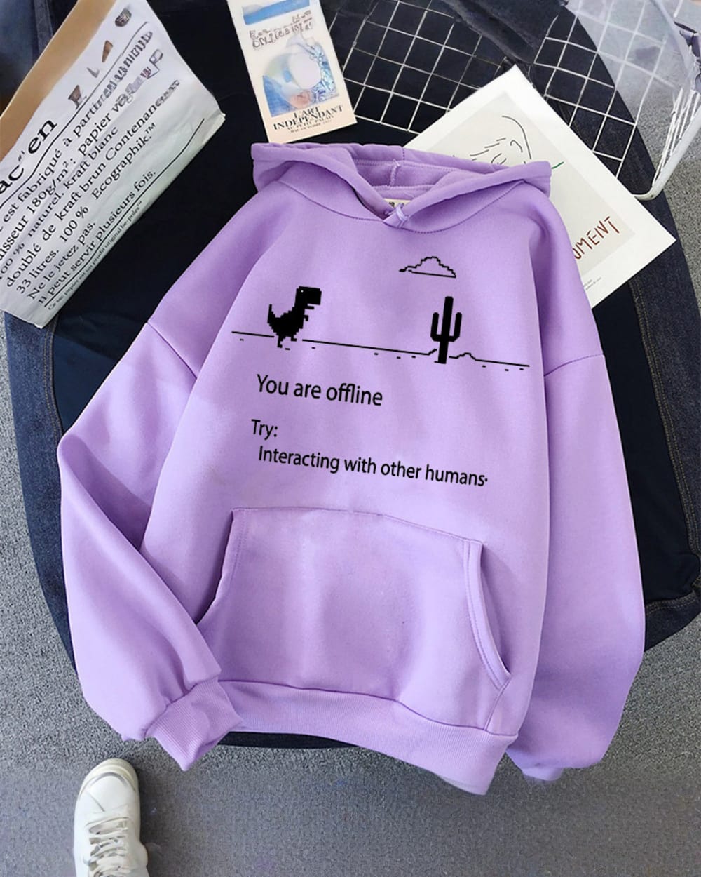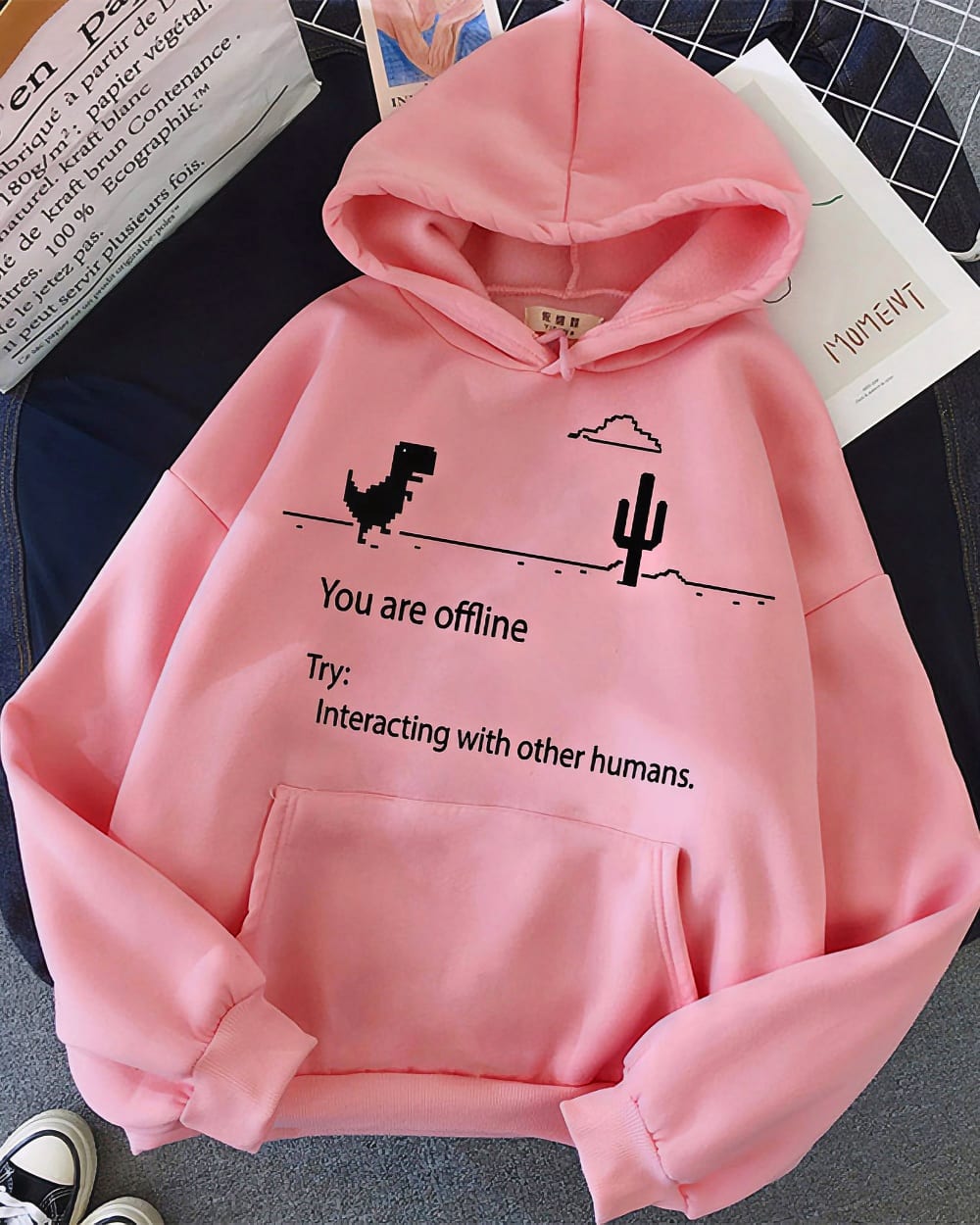 Game over? More like style level up! 🚫🌐 The No Internet Dinosaur Hoodie is here to keep you cozy and cute, even when the Wi-Fi’s down~ Featuring the iconic pixel dino from your fave offline game, this hoodie blends retro gaming vibes with modern-day adorableness~ (。•̀ᴗ-)✧